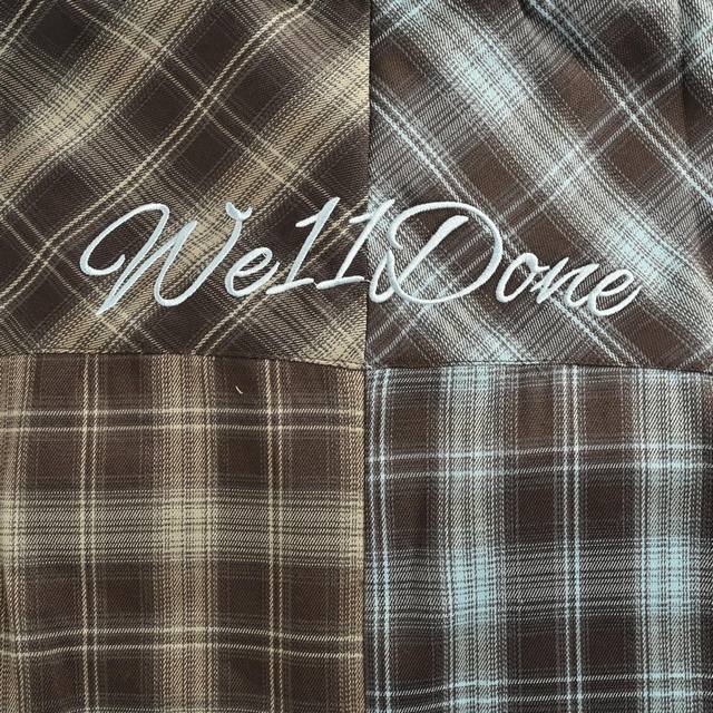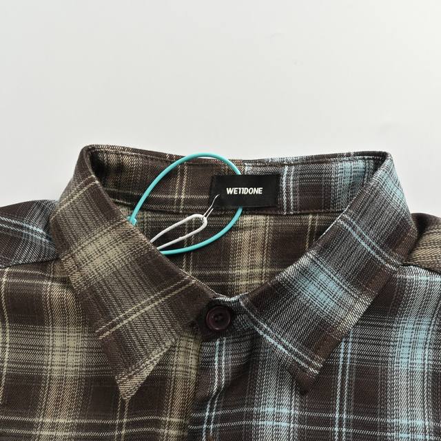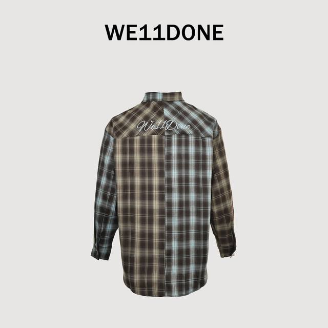 We11 Done autumn new American retro letter embroidery patchwork contrast color plaid long-sleeved shirt
