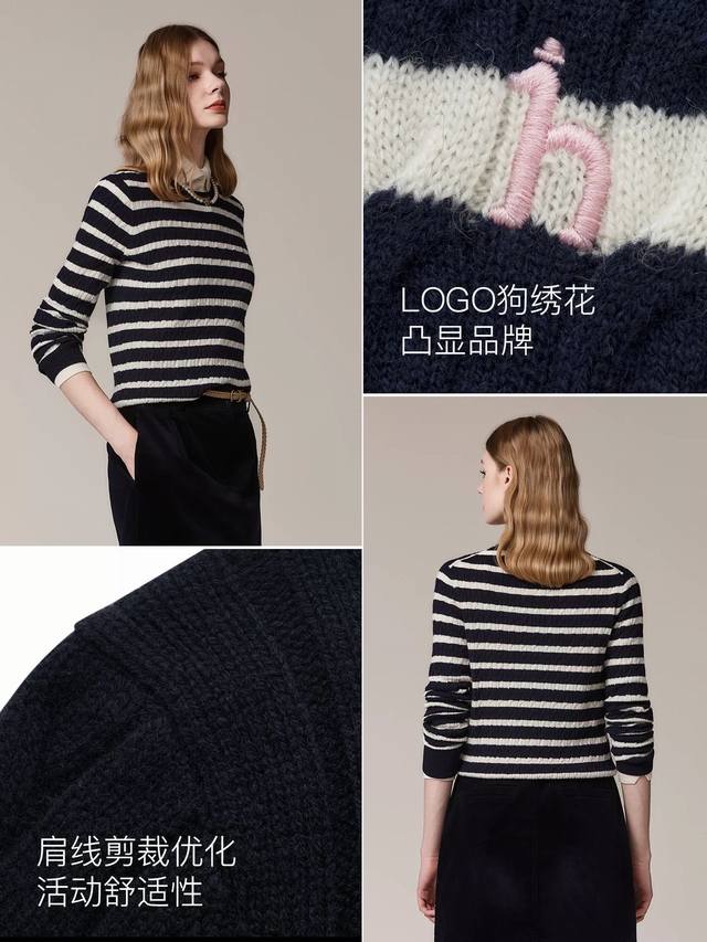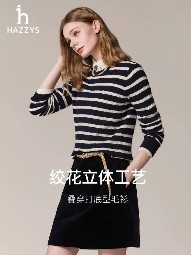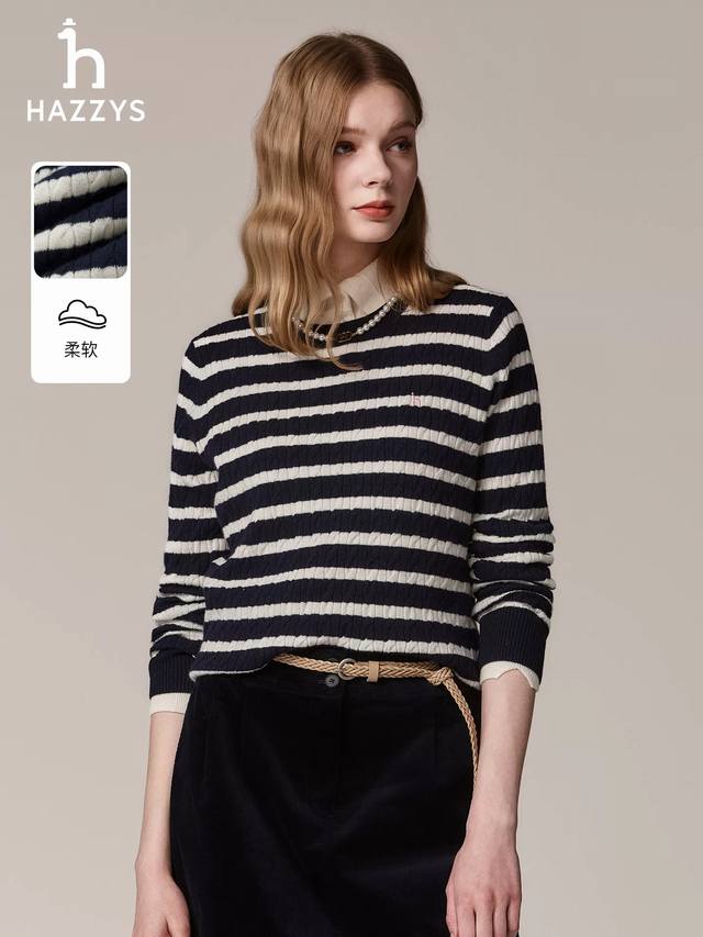 Hazzys Autumn Fashion Knit Sweater, Women's Striped Pullover Top, Round Neck Casual Cable Knit Sweater. The cable knit's three-dimensional texture creates a sophisticated, vintage, and elegant look, avoiding the monotony of solid-color sweaters.