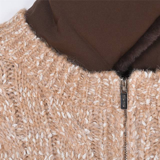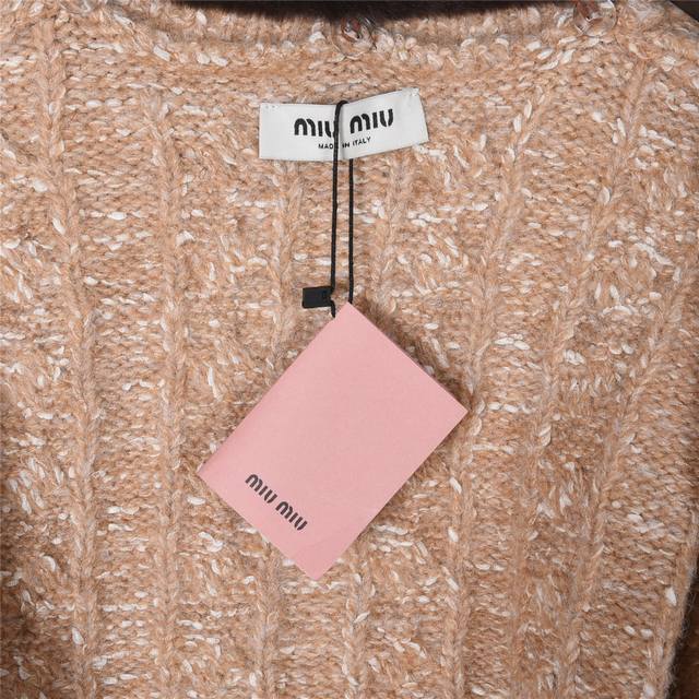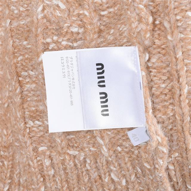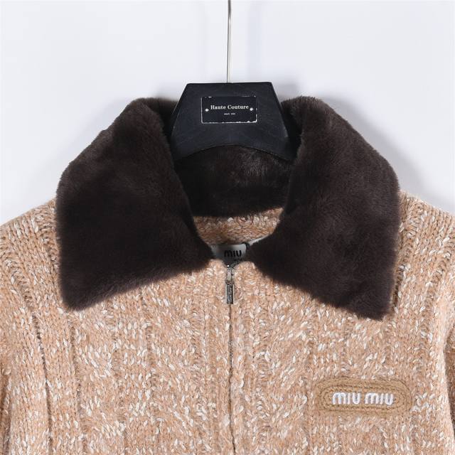 Women's Miu Miu 25Fw Mink Collar Fur Wool Zip-Up Jacket. Made from 100% wool, this jacket features a relaxed yet luxurious feel. The chunky cable knit creates an airy look, with gold threads shimmering within the yarn. Indoors, it's a matte warm brown, revealing subtle gold shimmers in natural light. Soft yet structured, it offers the gentle, non-scorching warmth characteristic of wool against the skin. The detachable mink collar adds a touch of luxury: sourced from mink belly fur, the short, dense guard hairs are incredibly soft and sink in. When fastened at the collar, the fur trim cascades down the jawline, softening the coolness. Removing the collar reveals a clean zipper silhouette, with the chunky cable knit texture becoming the sole embellishment. Paired with a cashmere turtleneck, it's perfect for commuting; with a silk camisole, it exudes a sophisticated, evening-ready vibe. Ddd's color scheme is an autumn/winter palette: light camel with gold shimmer is like crushed caramel, paired with a suede skirt like a freshly baked chestnut; beige is like milk-soaked wool, paired with denim blue for an unsweetened, relaxed feel; dark gray mixed with silver shimmer is like stars in the night, paired with a velvet skirt, the contrast of cool and warm creates a restrained luxury. Ddd even replicates the precision of the official website in the details: the zipper is a matte metal piece, engraved with a miniature Miu logo; the detachable fur collar's snap buttons are hidden inside the collar, leaving no trace yet securely fastened. It's not just a coat; Ddd is a textured container that embodies the warmth and elegance of autumn/winter, sewn into its very fabric. Ddd Colors: Apricot, Dark Gray Ddd Sizes: 36, 38, 40