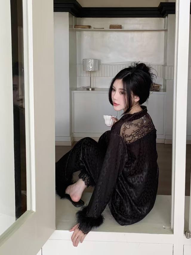 Xiaoxiang 2025 new high-end leopard print pajamas for women, home clothes, original quality, official website, same style, home classic fashion, pure desire style, imported silk segments + ostrich feathers, soft and breathable fabric, inner edging, super high value, wardrobe must-have Xs. Xs=155-160cm, weight about 90-105;