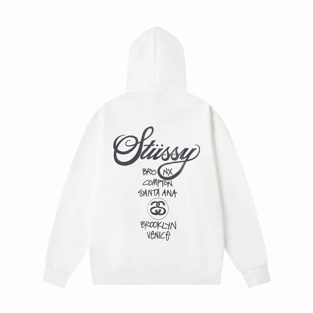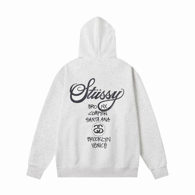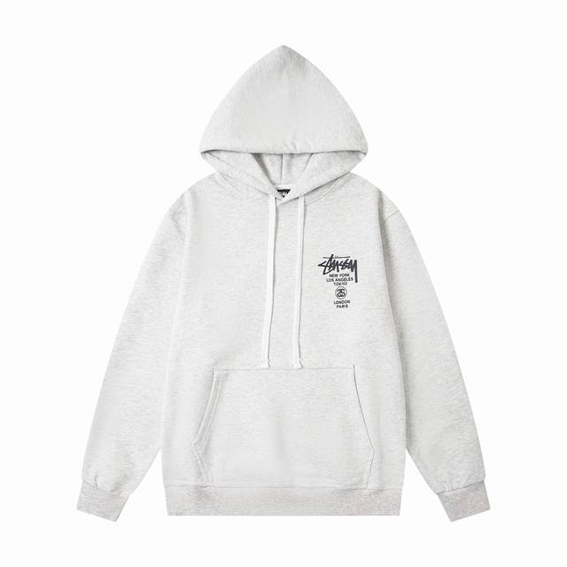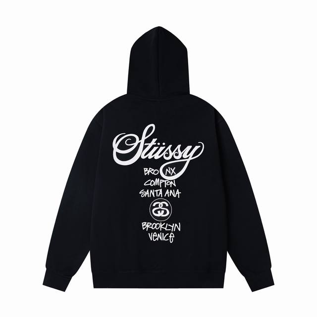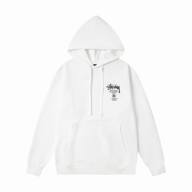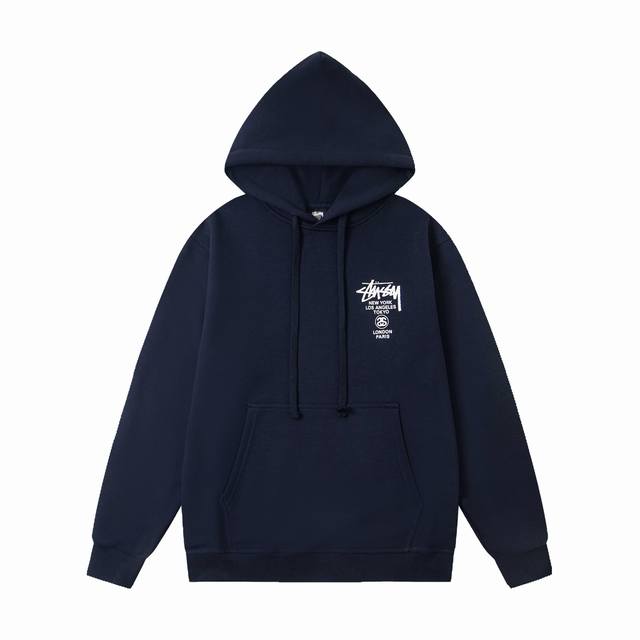 Xy8917# High-quality, heavyweight, different from market refurbished goods. Stussy World Tour Hoodie with letter print, American retro style, unisex. Colors: Black, White, Royal Blue, Gray. Sizes: S, M, L, XL. Fabric: 450g Korean style hoodie. Image: Own white background image.