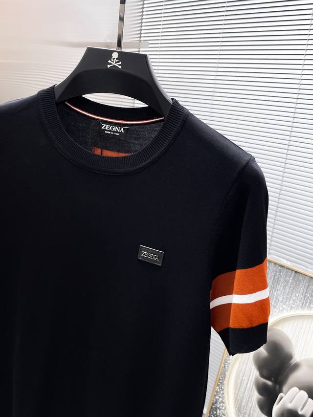 Zegna 2025Ss New Short-Sleeve Crew Neck Knit Sweater, High-End Version! Custom-made fabric for superior breathability and comfort, impeccable details, brand elements and design concepts reflecting high quality. Delicate and soft to the touch! Offers a casual cut and a fantastic fit! Sizes: M-3XL