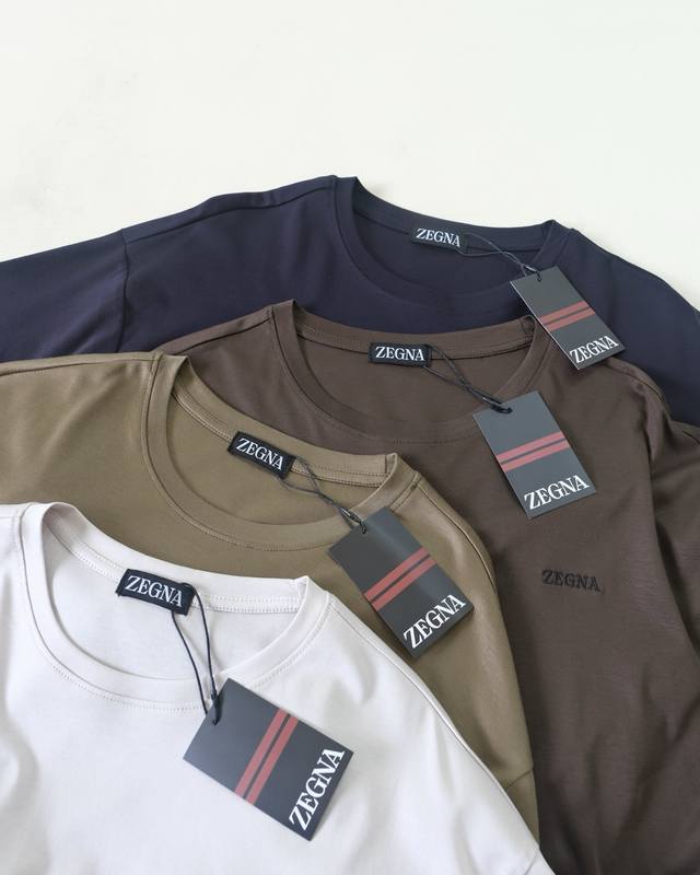 Zegna double mercerized soft cotton short-sleeved T-shirt