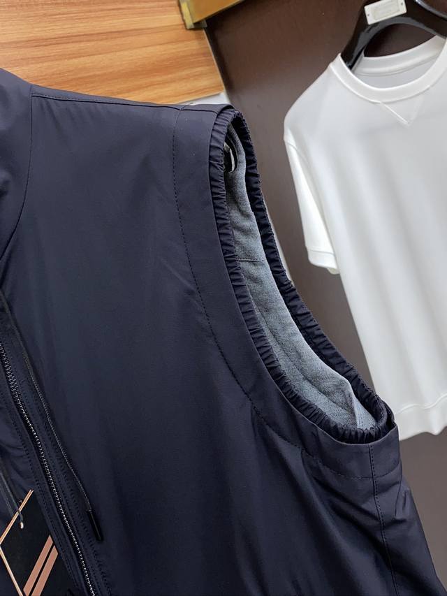 Zg Zegna Reversible Vest - Hot Selling at Counters. This jacket features Zegna's exclusive Japanese Toray four-way stretch material on the A-side, top-quality fabric and craftsmanship, offering a unique luxurious feel. The delicate, silky satin texture provides smooth comfort against the skin, preventing stickiness and providing an ultimate luxury wearing experience, while also keeping you warm and comfortable. The B-side is made of highly breathable superfine merino wool, featuring a stylish stand-up collar with quick-drying and heat-regulating functions. It ensures warmth and comfort for various events, making it an ideal choice for outdoor activities. The relaxed, three-dimensional H-shape silhouette offers excellent coverage, a simple yet stylish design, and a comfortable stand-up collar that provides warmth without pressure. The exclusive custom-designed contrasting drawstring with hand-stitched metal ends demonstrates attention to detail in every aspect. Available in navy blue, black, light gray, and brown on the A-side and gray Zephyr on the B-side, this reversible vest features a lightweight design, making it as light as the wind. This stylish down jacket features a stand-up collar and an adjustable hem for perfect styling. Elegant color combinations and leather drawstrings add a touch of sophistication. The Ddd reversible short jacket combines chic urban style with practical design. The stand-up collar and adjustable hem provide protection from the elements, while leather trim details and contrasting straps add a striking touch for any occasion. Manufactured by a domestic listed company's OEM factory, the jacket boasts three-dimensional tailoring, seamless seams, and meticulous attention to detail. Sizes: M-3XL (48-56). Available now.