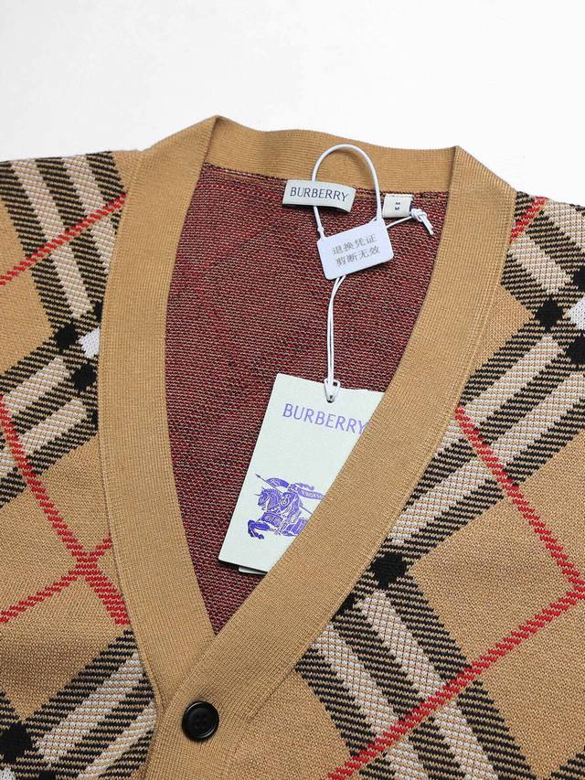Zp version Ddd - Bur official website classic wool blend plaid V-neck cardigan, thick sweater, unisex Ddd - Made with Zp custom-dyed wool blend ribbed fabric, same dyeing batch, zero color difference, complete set of accessories, custom-made to distinguish it from market goods, welcome to compare Ddd - Color: Khaki Ddd - Sizes: SML XL DDD