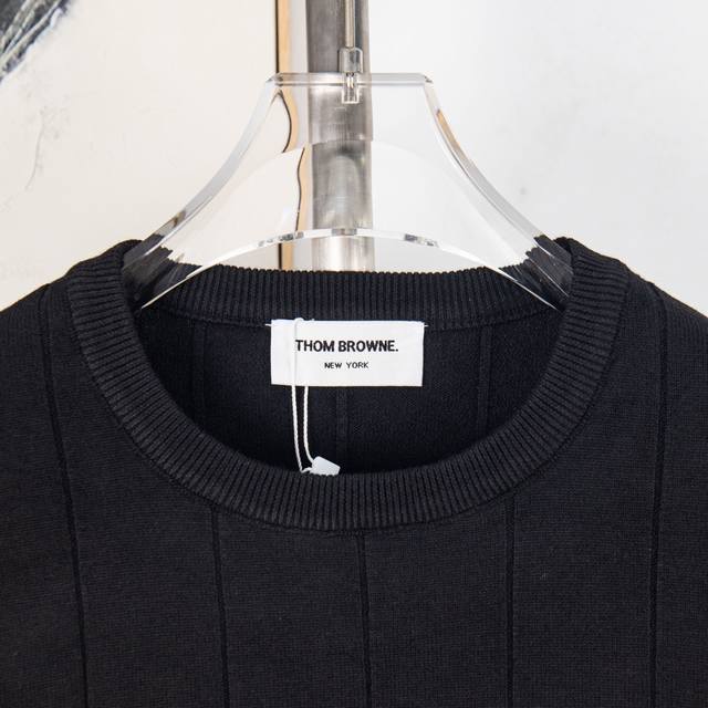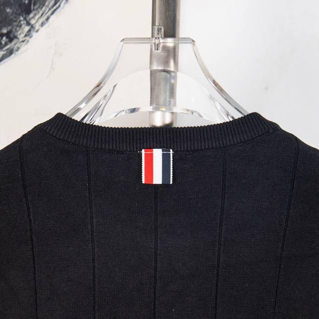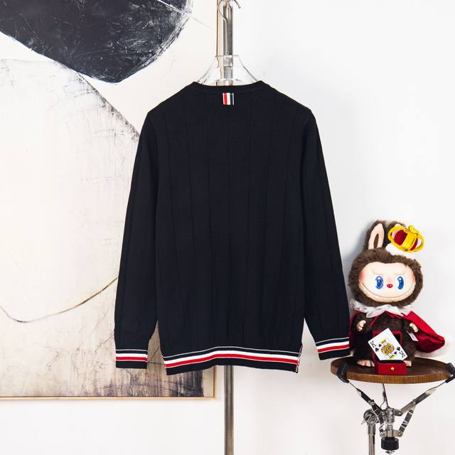 Zp Version [Exclusive Supply] Thom Browne Classic Four Stripes Crew Neck Knit Long-Sleeve Sweater. A classic style worn year after year. Made with high-quality, color-matched, custom-dyed cotton yarn containing wool, it's soft and skin-friendly. The double-layer knit is thick and has an incredibly good feel; you can feel its quality as soon as you hold it. It's versatile and easy to wear. Perfect for formal occasions, pairing with a coat or even for work! Pair it with jeans or a Tb pleated skirt for a sophisticated yet youthful, preppy look! Colors: Black, Blue Sizes: M, L, XL, 2XL, 3XL Item Number: Yk10551