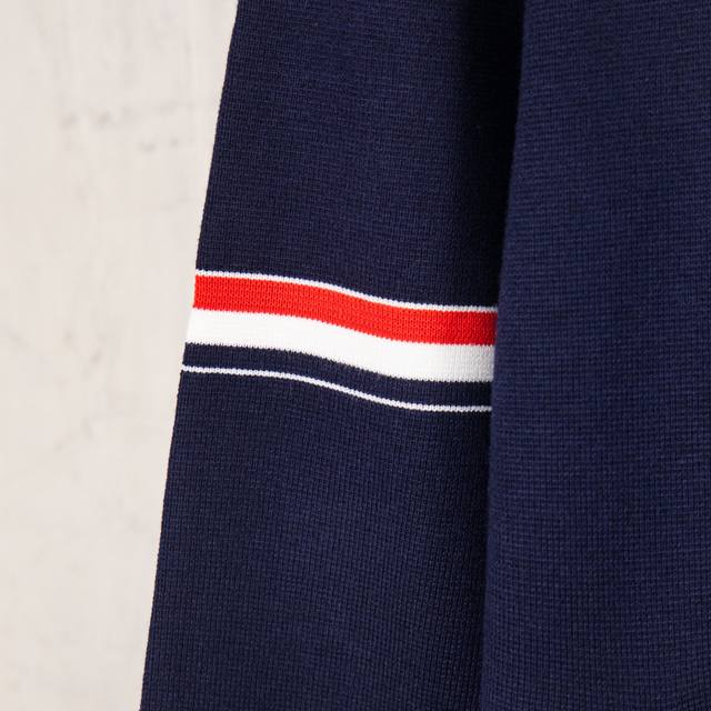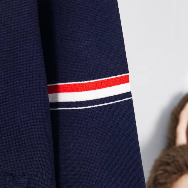 Tb Classic Four Stripes Basic Style, a classic piece worn year after year. Made with high-quality, color-matched, custom-dyed cotton yarn containing wool, soft and skin-friendly, double-layered knit for a thick and luxurious feel. You can feel its quality as soon as you hold it. It's incredibly versatile; easy to wear and versatile enough to go anywhere. Perfect for formal occasions, layering under a coat, or even for work! Pair it with jeans or a Tb pleated skirt for a sophisticated yet youthful, preppy look!