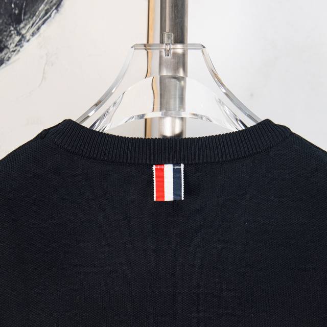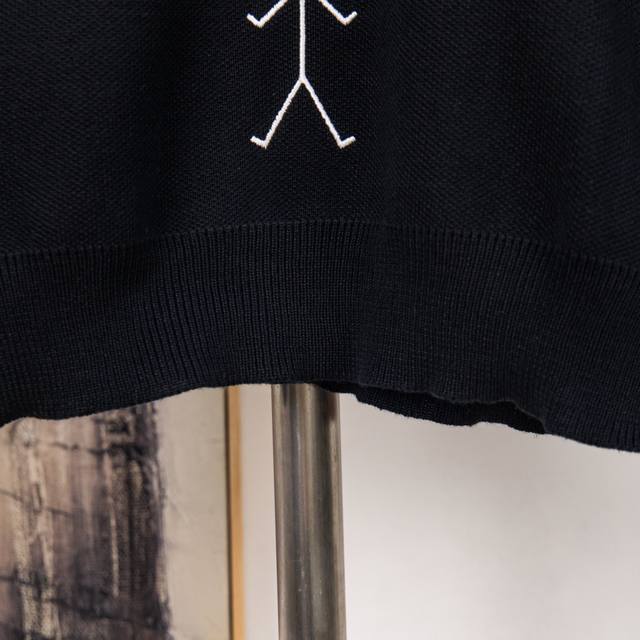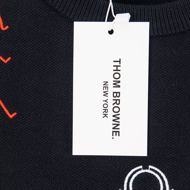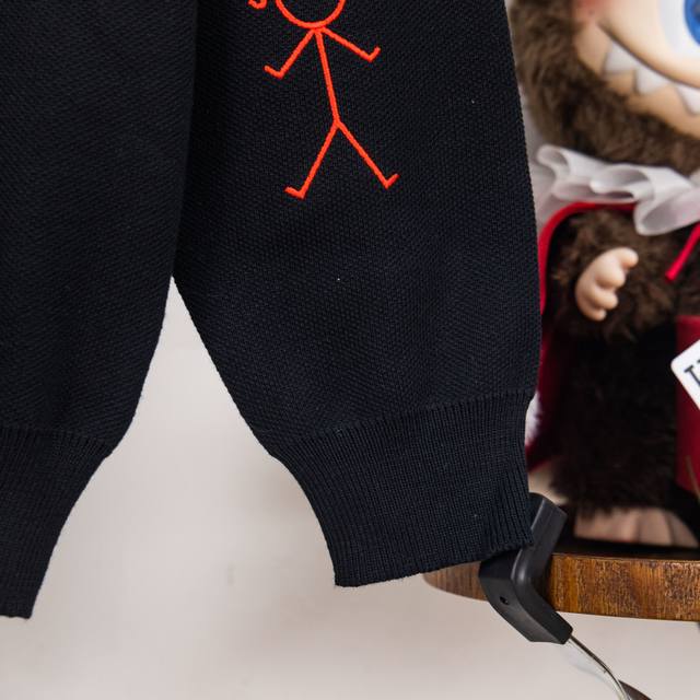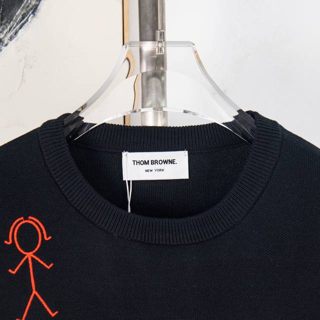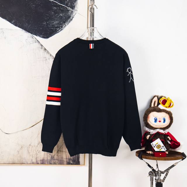 Thom Browne Thom Browne Embroidered Stick Figure Pattern Classic Four Stripes Knit Pullover Long Sleeve Knit Sweater Wool Sweater Imported Wool Blend Fabric