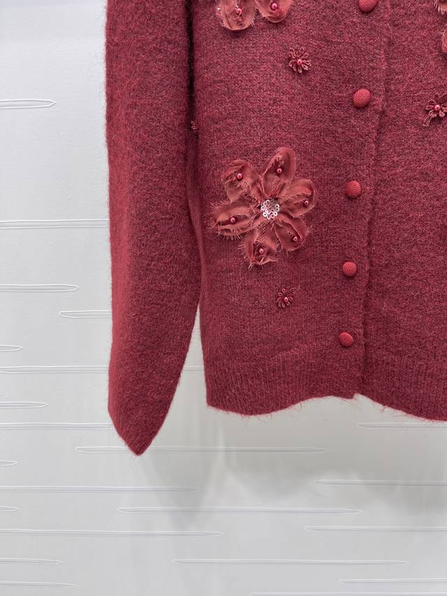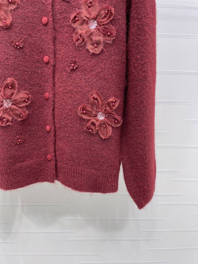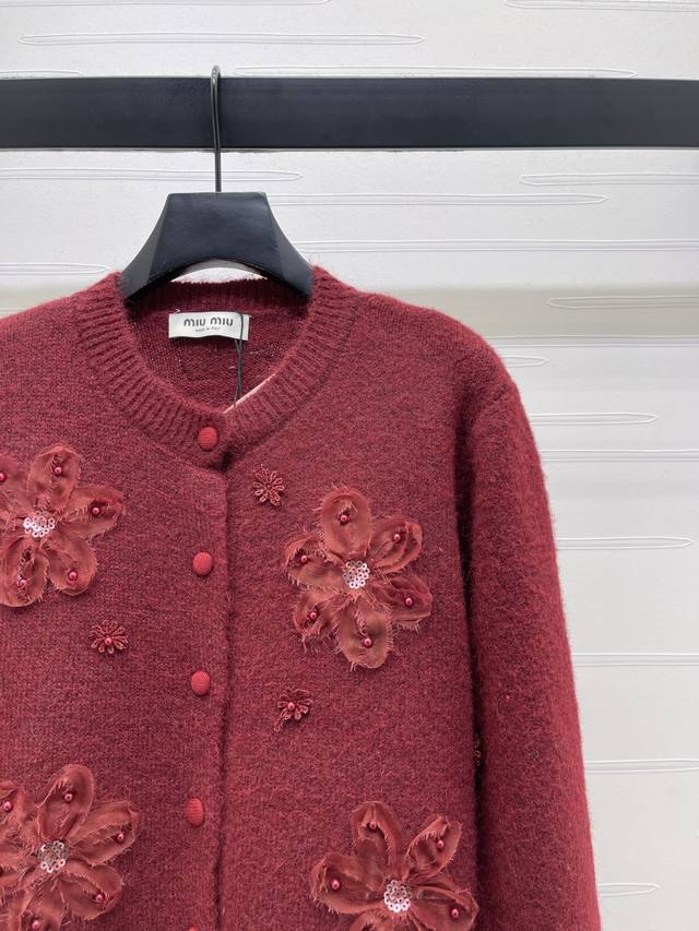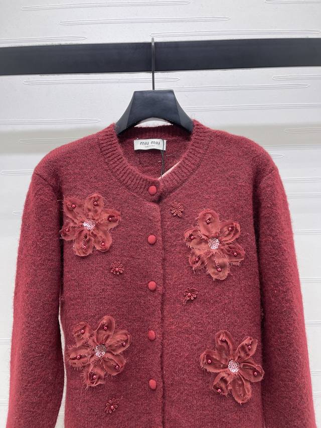 New Arrival! High-quality original Miu Mi 2026 Early Spring Collection! Beaded floral knit cardigan, soft and skin-friendly wool blend material, 3D flowers + beaded design, exuding a French romantic atmosphere. Perfect for commuting or parties, a must-have for autumn and winter! 2 colors! Sizes SM-L3! High-quality bulk order A706B410C DDD