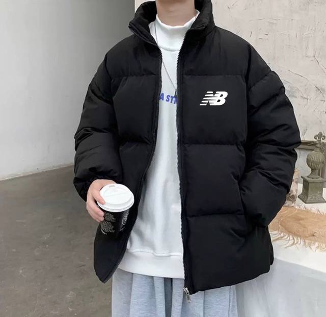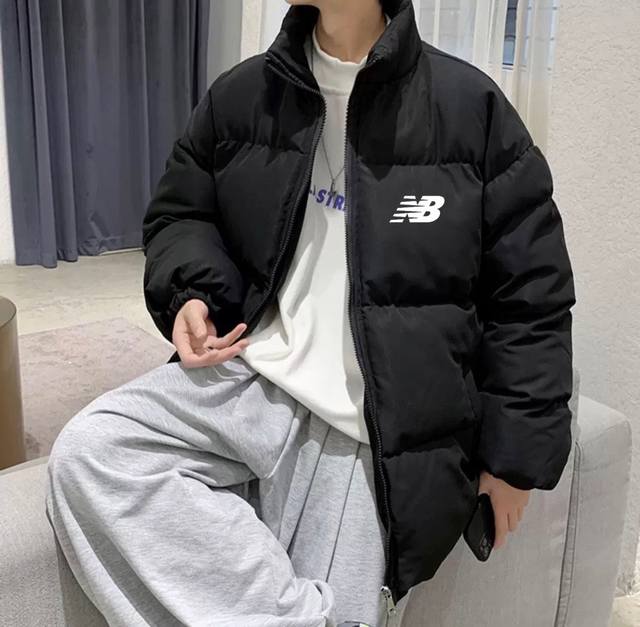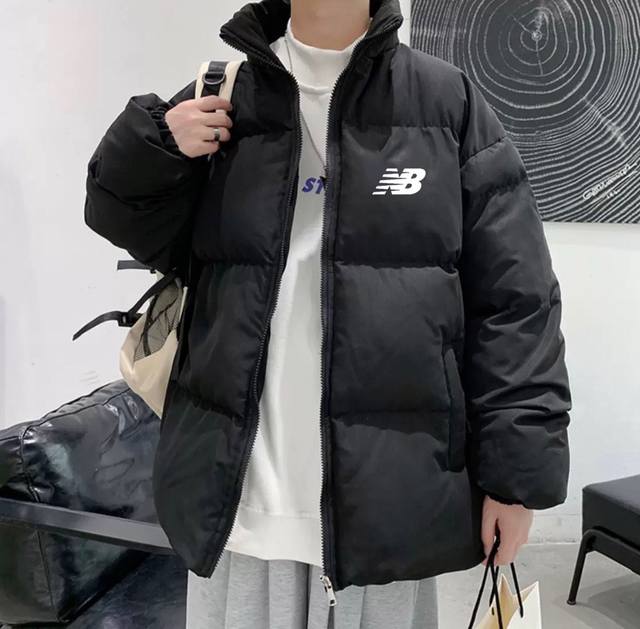 New Arrival New Balance NB Loose Down Cotton Jacket with Stand Collar DDD Made with soft Oxford cloth and 750 Xinjiang down cotton, high-density filling for warmth and comfort. The loose fit enhances freedom of movement. Features PU printed original custom label and hangtag. DDD Color: Black DDD Size: M