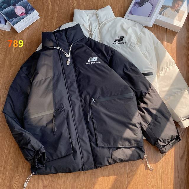 New Balance Japanese-style workwear jacket with large pockets, hollowed-out letter logo, down-filled puffer jacket, super high quality, hot-selling new arrival! Original 1:1 replica, custom-made fabric, classic design, available in three colors. Reject the ordinary, eye-catching street style! Filled with 450g Xinjiang down cotton, perfect texture, extremely warm! Original tags, wash label, and neck label all included, details are perfect. Worn by major influencers on Instagram, Xiaohongshu, and Kuaishou. Unisex style, best friend's choice, five-star recommendation! Available now! Colors: Black, White, Brown.