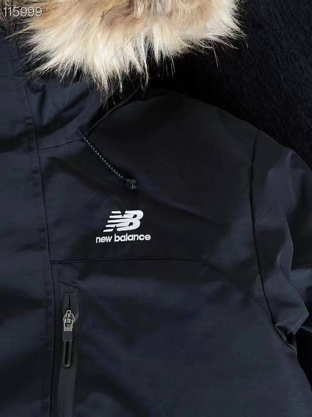 New Balance Solid Color Hooded Down Jacket with Fur Collar Filling: 90% white duck down, with full down clusters and a down content of up to 90%, giving the down jacket exceptional warmth. The down fibers trap a large amount of still air, forming a natural insulation barrier, effectively reducing heat conduction and locking warmth inside the jacket, allowing you to feel the warmth of spring sunshine even in freezing weather. Fur Collar: An oversized fur collar surrounds the neckline; the soft, smooth fur feels like a gentle breeze against your face. It's not just a stylish decoration, but also a powerful warmth-keeping tool, effectively blocking cold wind from entering through the neck, adding to overall warmth. Materials: The chest pocket uses magnetic buttons for convenient and silent opening and closing. The magnetic force is just right; a gentle touch secures the closure, avoiding the inconvenience of traditional buttons and the jamming of zippers. Ample pocket space for convenient storage of small personal items such as phones and cards, readily accessible and practical. Features: A unique detachable design meets diverse needs. The fur collar or pockets can be easily removed to suit different moods and occasions, instantly switching styles. Whether for a casual, stylish look or a sleek, athletic outdoor adventure, it perfectly adapts to showcase your multifaceted charm. This down jacket combines functionality and style, making it an ideal choice for warding off the winter chill. Color: Black/Off-white. Size: M-XL. Chest: 123/127/131/135 cm. Shoulder Width: 53.7/54.9/56.1/57.3 cm. Length: 81.5/83.5/85.5/57.5 cm. Sleeve Length: 64.5/65.5/66.5/67.5 cm.