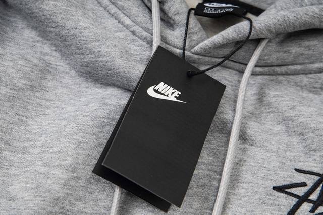 Stussy X Nike joint series solid color logo letter embroidered casual pullover hooded sweatshirt unisex