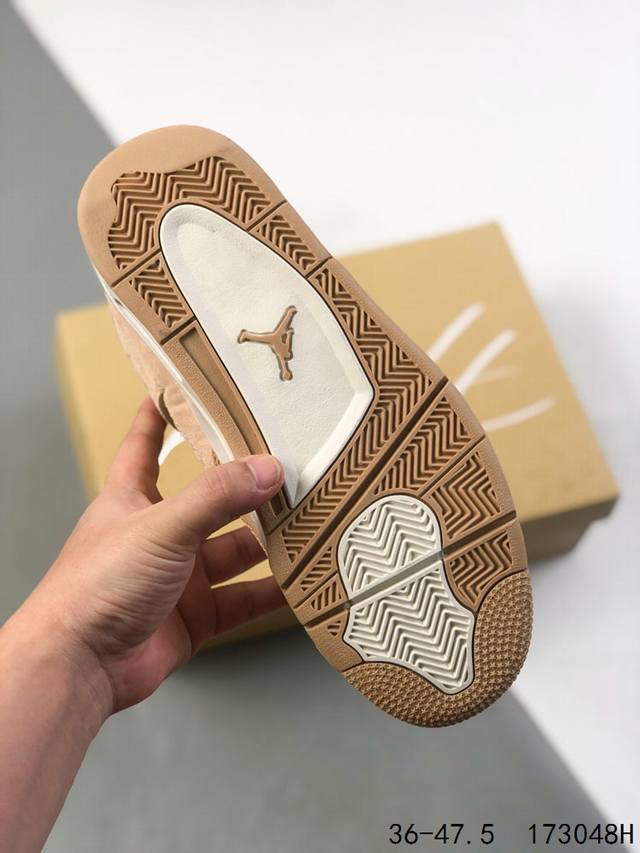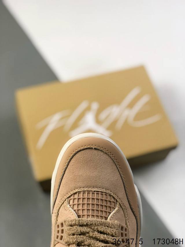Nike Air Jordan 4 "Monsoon Blue" Aj4, Michael Jordan's Aj4 mid-top retro, casual, and athletic basketball shoe. Designed with the philosophy of lightweight, speed-focused basketball shoes in mind, reducing weight while enhancing comfort, the midsole continues the previous model's use of a split, visible Air Sole cushioning system. The lace eyelets and heel tab are inspired by basketball nets, cleverly integrating basketball into the shoe's design, imbuing the shoe with fluidity, rhythm, and elegance.