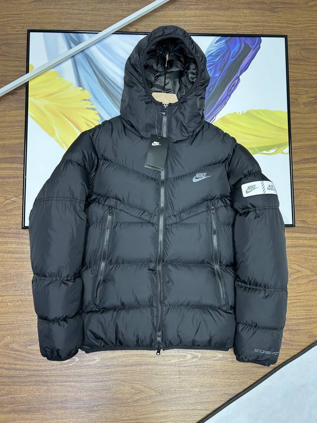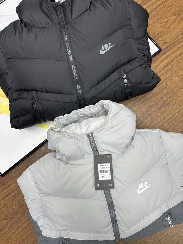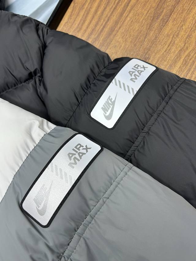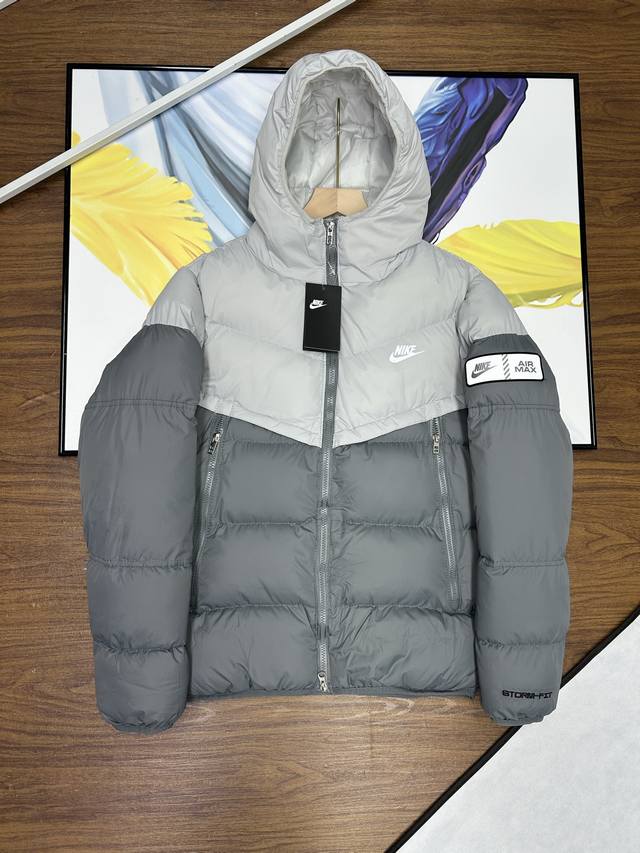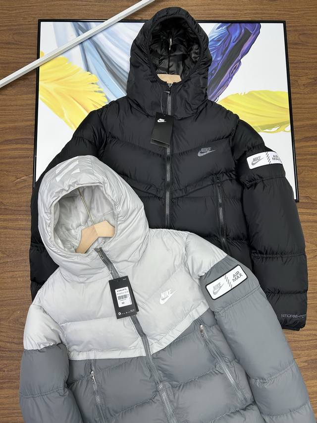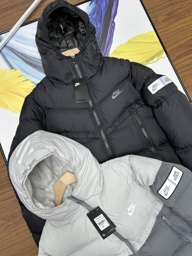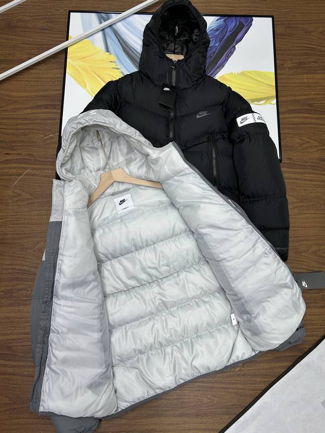Details: Nike official website synchronized hooded down jacket! Unisex style, with subtle quilting, waterproof and windproof material, EU-customized fabric! Hand-stuffed cotton, 100% washed, very substantial lining. The puffed collar alone is stunning; the cut is super flattering and not bulky. Official website synchronized update~~ Nike As classic short hooded down jacket, winter couple style, men's and women's, a hit on Xiaohongshu and Douyin, worn by many celebrities! Unisex style, a versatile must-have, absolutely eye-catching! One of the essential winter coats! Made with original factory-supplied windproof fabric, using Xinjiang cotton fleece and high-end down cotton interlayer lining, skin-friendly, soft, and with superior warmth! The iconic 3D patch on the chest highlights the brand's identity, while the dropped shoulder design offers a relaxed and stylish look. The entire garment features multiple intricate color-blocking and patchwork designs, showcasing complex craftsmanship and impeccable details. All tags and washing labels are included. Colors: Black, Gray. Sizes: M-XL. Size Chart: M: Length 68cm, Chest 116cm, Shoulder 47cm (Recommended for approximately 120 lbs); L: Length 70cm, Chest 120cm, Shoulder 48cm (Recommended for approximately 140 lbs); XL: Length 72cm, Chest 124cm, Shoulder 50cm (Recommended for approximately 160 lbs); XXL: Length 74cm, Chest 128cm, Shoulder 51cm (Recommended for approximately 180 lbs).