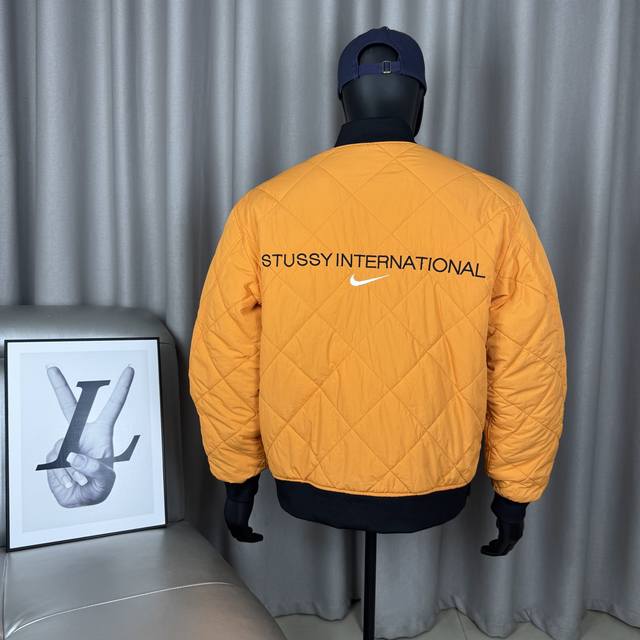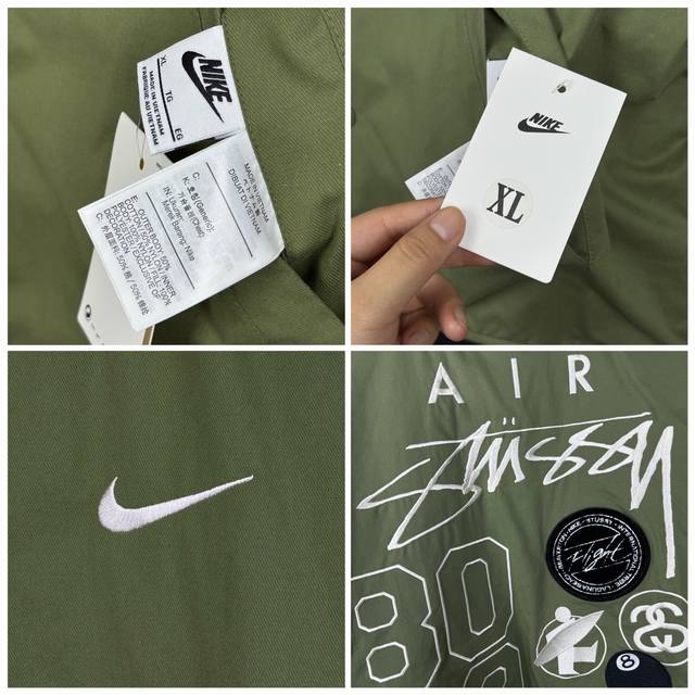 Stussy x Nike reversible quilted flight jacket with embroidered logo, unisex. - Full set of 1:1 custom accessories, custom three-label Yuan version hangtag, logo, and packaging bag. - The fabric is custom-dyed to match the original, giving it a structured and stylish look. The collar and cuffs feature widened and denser ribbing in the same color scheme. The quilted pattern prevents cotton from shifting. The reversible design is very complex, and both sides have pockets at the hem. All letters and logos are embroidered, clear, and without frayed edges. The loose fit is flattering for both men and women! - Colors: Black, Army Green - Sizes: M-2XL. See picture nine for details.