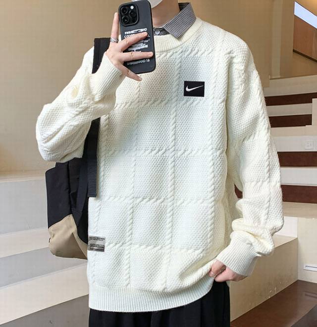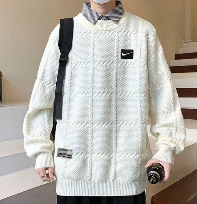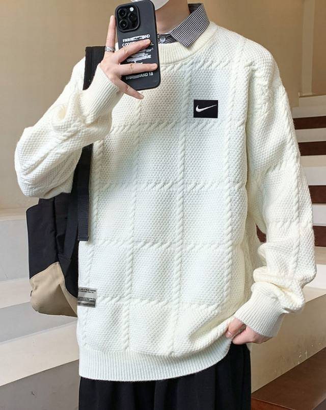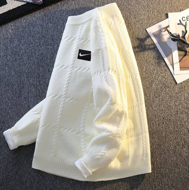 New Arrival! Nike Fall/Winter Sweater, Couple Style, Knitted Sweater, Trendy and Cool, Comfortable Crew Neck Design, Comfortable and Warm, Easy to Put On and Take Off, Responding to the Current Retro Sports Trend. This style uses a blended fabric with acrylic added to the cuffs and hem for increased elasticity, less deformation, and greater durability. It has a soft feel and is comfortable to wear without feeling burdened. The simple and stylish silhouette conveys versatility and practicality! Colors: White, Gray, Khaki Sizes: M, 3XL Chest, Length, Shoulder Width M 92 64 44 L 96 66 46 XL 100 68 48 2XL 104 70 50 3XL 10 8 71 52