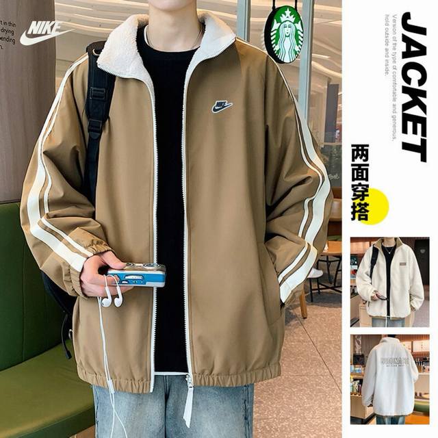 New Arrival! Nike Overseas Version 25Ss New Four-Color High-Quality Ins Color-blocked Lambswool Reversible Down Cotton Jacket. The entire garment features a small checkered jacquard design with perfectly balanced and timeless color combinations. The high-quality workwear woven lambswool fabric is incredibly soft and comfortable, even against the skin. Unisex, a must-have high-quality item. Grab it now! Colors: Black, Army Green, Red, Khaki. Sizes: M-2XL. Chest, Length, Shoulder Width: M 108 68 52, L 112 69 53.5, XL 116 70 55, 2XL 120 72 56.5.
