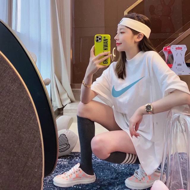 New arrival! Nike's first wave of the strongest candy-colored basic round neck short-sleeved T-shirts! Everyone has several pieces! The best couple's outfit!