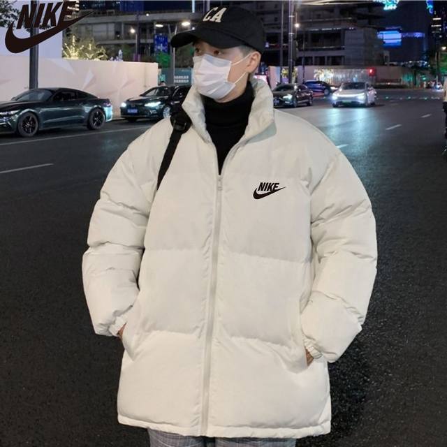 New Nike winter style, unisex fashionable stand-up collar printed versatile basic puffer jacket/cotton coat, men's thickened coat/cotton coat! Colors: Black, White, Coffee, Light Gray. Sizes: M-2XL.