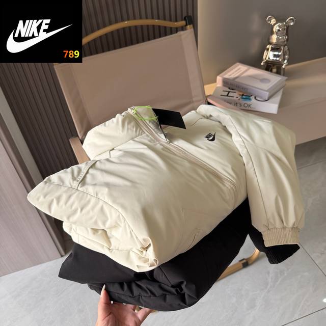 Nike 25Ss Winter New Stand Collar Thickened Cotton Jacket, Classic and Versatile, Timeless Series, an Excellent Winter Outing Essential Item. The fabric uses a high-quality technical coating for windproof and rainproof design, upgraded cold protection with high-density fabric, thickened cotton, 3-second quick-heating and heat-locking, and a built-in 100% fluffy and breathable design for enhanced warmth. 400g cotton design maintains warmth, high-density fabric provides double cold protection, excellent value for money, and is very easy to care for. The loose fit is very three-dimensional, comfortable to wear, and very skin- friendly . Versatile style, high quality, wear with confidence, not bulky, classic high-street style, versatile and good-looking, easy to wear for any body type, exquisite workmanship, attention to detail, complete labels. Full of sincerity. Colors: Black, Khaki. Size chart 9.