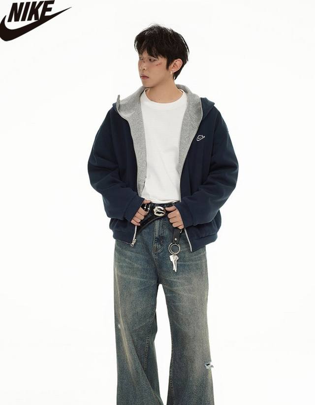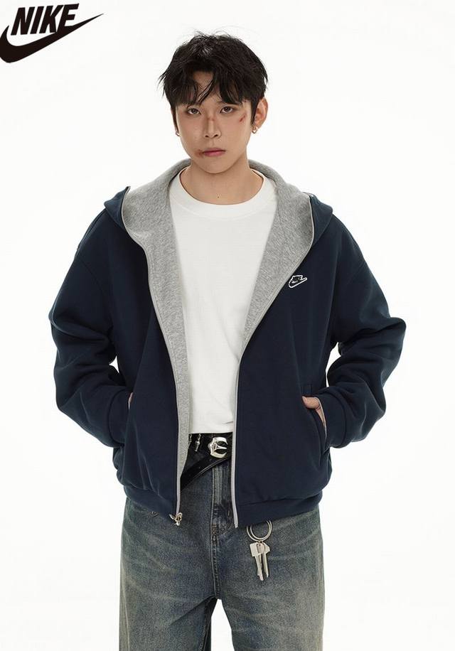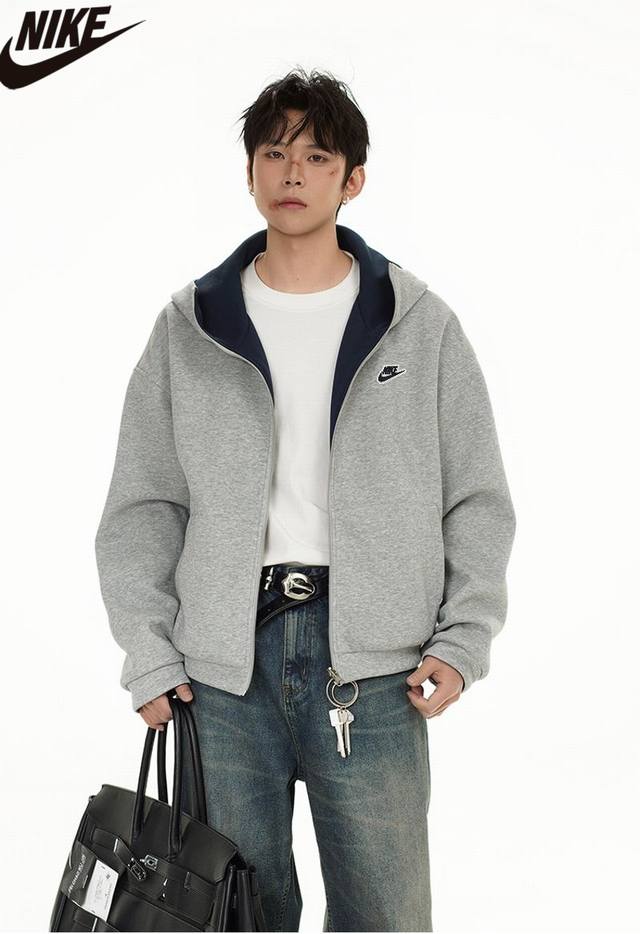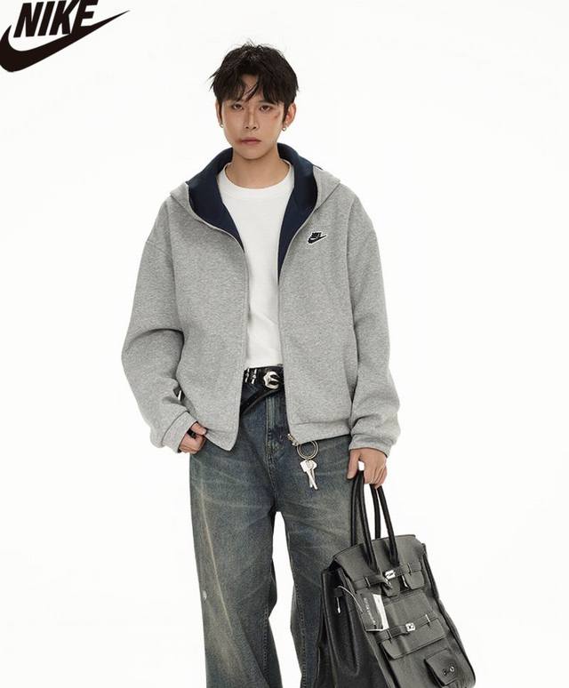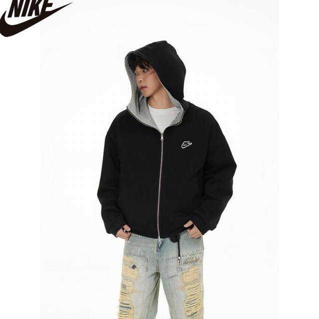 Nike Autumn New Arrival, Unisex Hooded Loose-fitting Trendy Cardigan Sports Casual Jacket, Men's Versatile Sweatshirt Top!