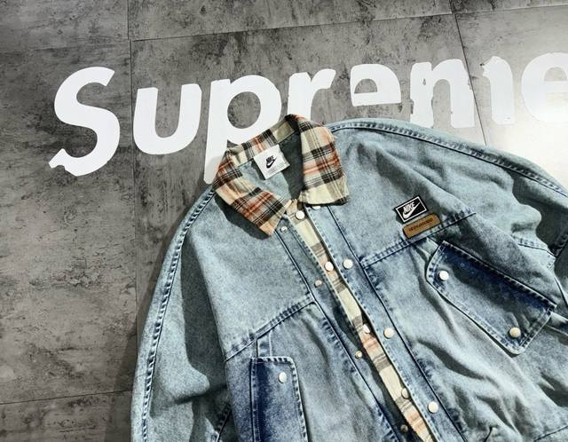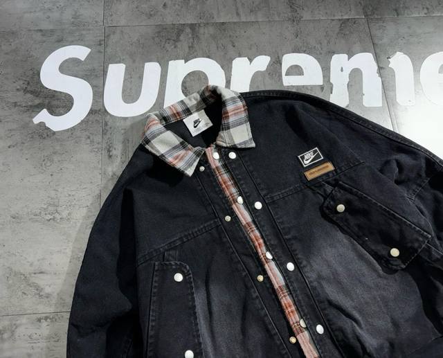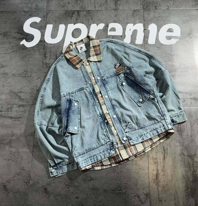 Nike contrast color stitching 2025 autumn new retro denim shirt jacket