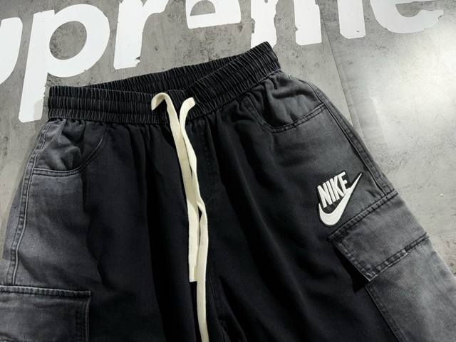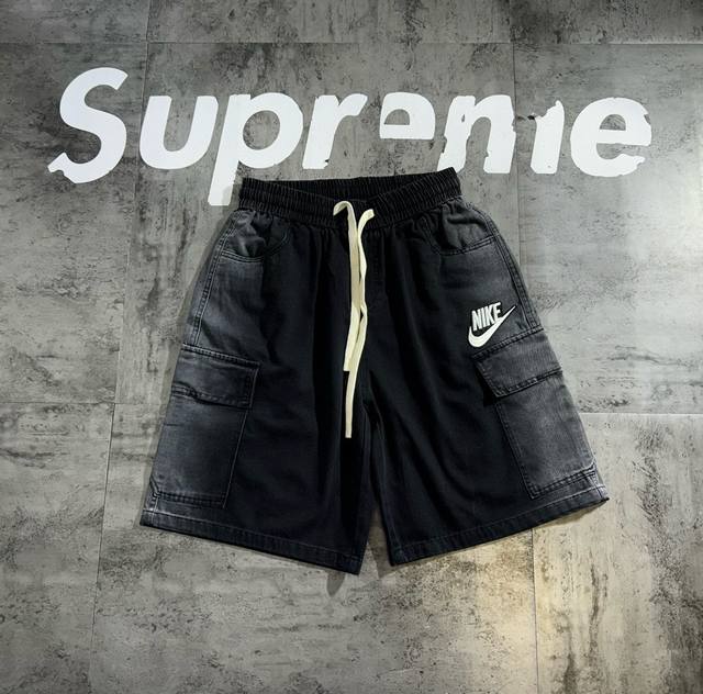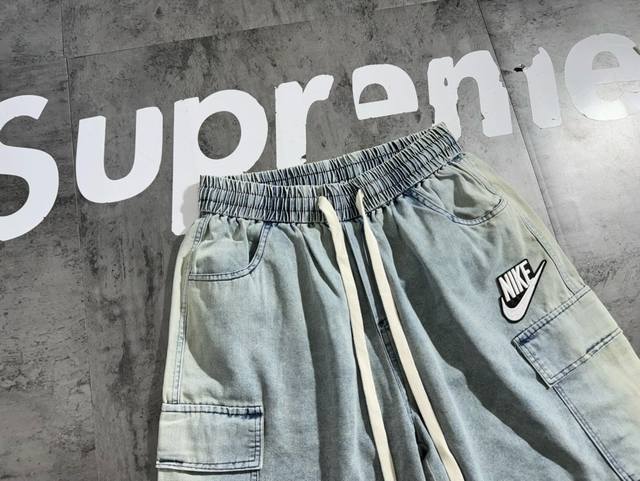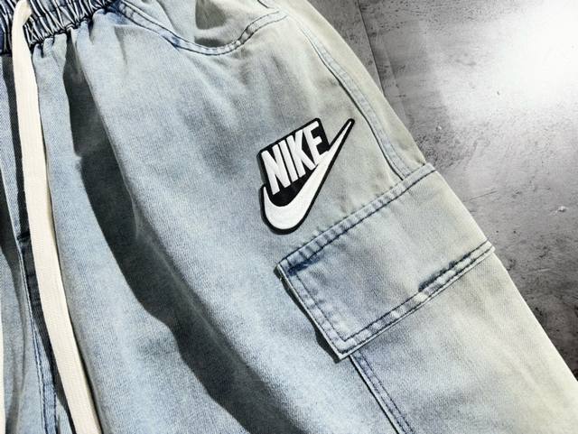Nike denim gradient designer retro casual couple shorts The fabric is made of de