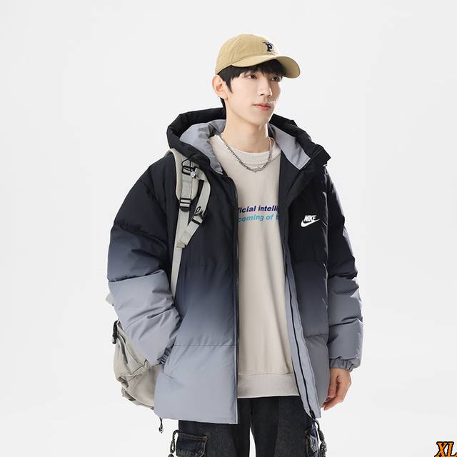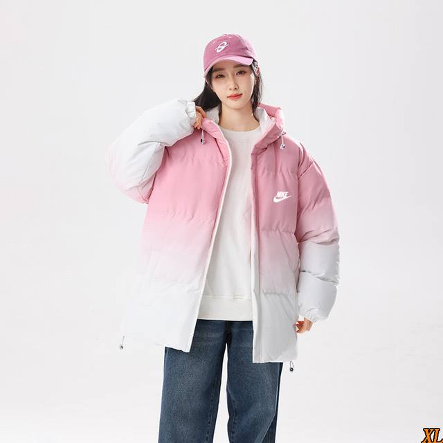 Nike Exclusive Real Shot New Arrival: High-Quality Winter Hooded Cotton Jacket, Couple's Thickened Loose Gradient Warm Puffer Jacket, Hooded Cotton Jacket, This Season's Main Feature, Ample Stock, Confident Recommendation, High-End Quality, Classic Design, Excellent Workmanship, Classic and Versatile, Excellent Wearing Effect DDD