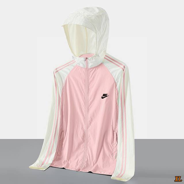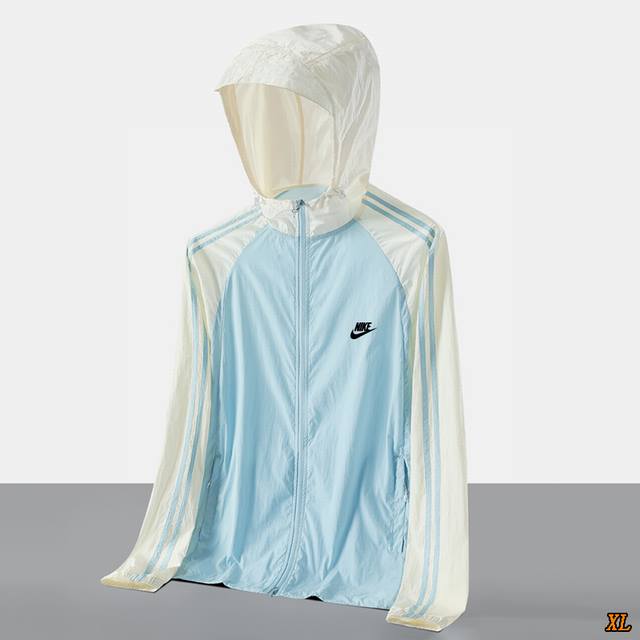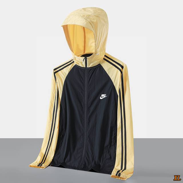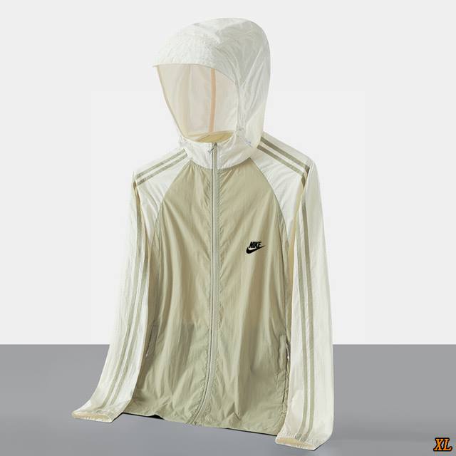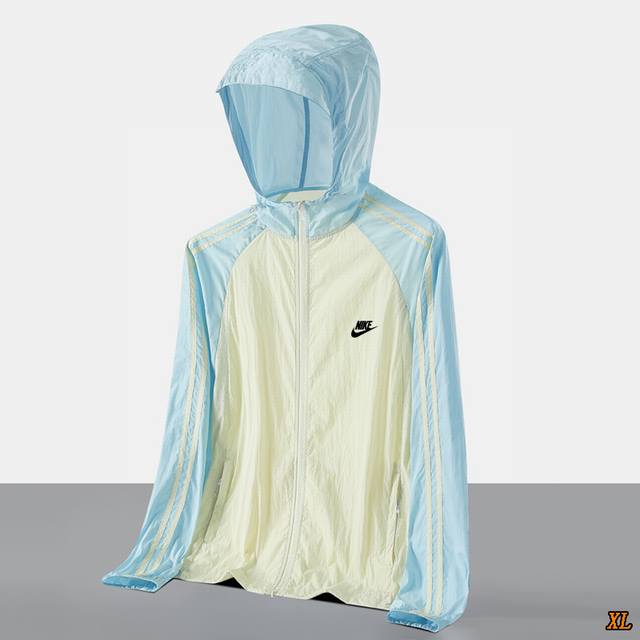 Nike Exclusive Real Shot New Summer High-Quality Trendy Loose-Fitting Versatile Hooded Striped Jacket, Unisex Top, Striped Sun Protection Shirt, Skin-Friendly Shirt. This season's main item, ample stock, highly recommended, high-end quality, classic design, excellent workmanship, classic and versatile, excellent fit.