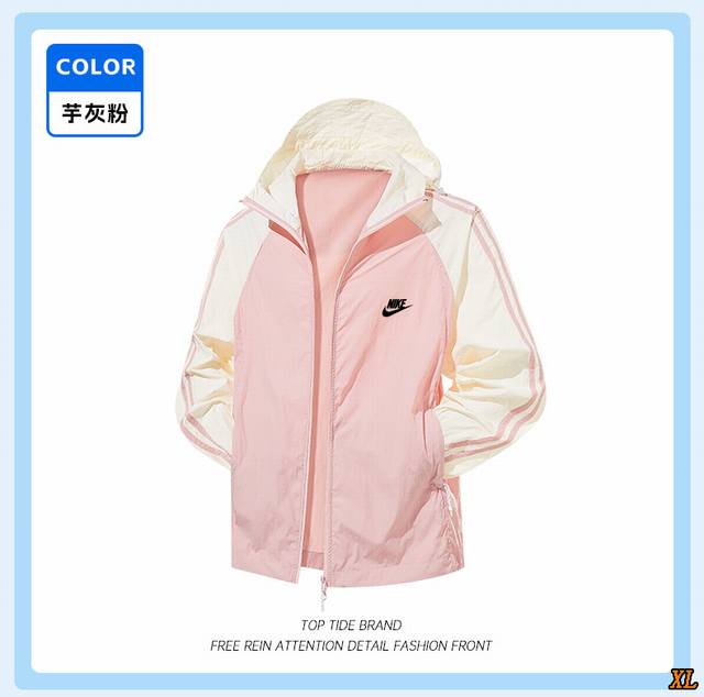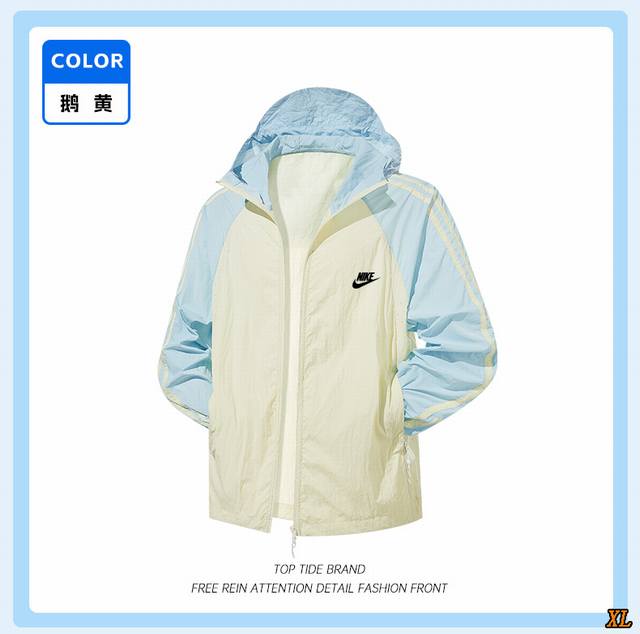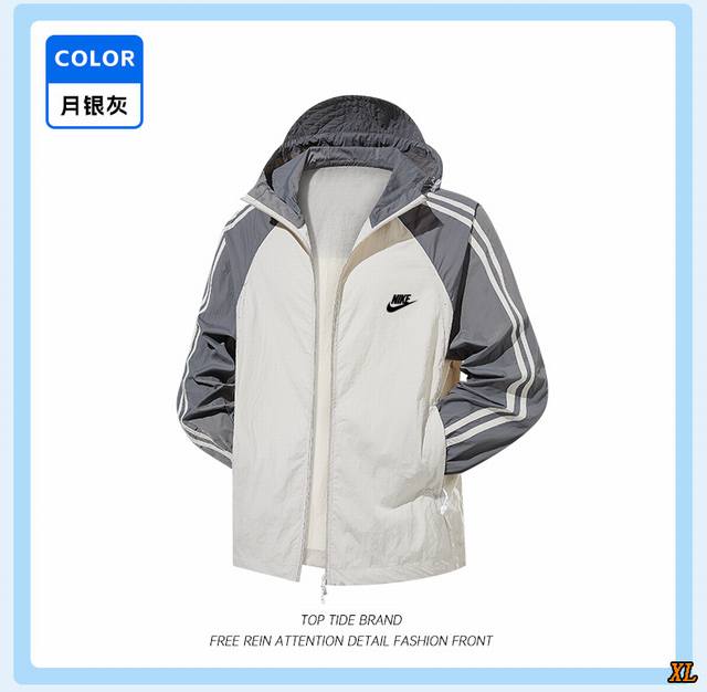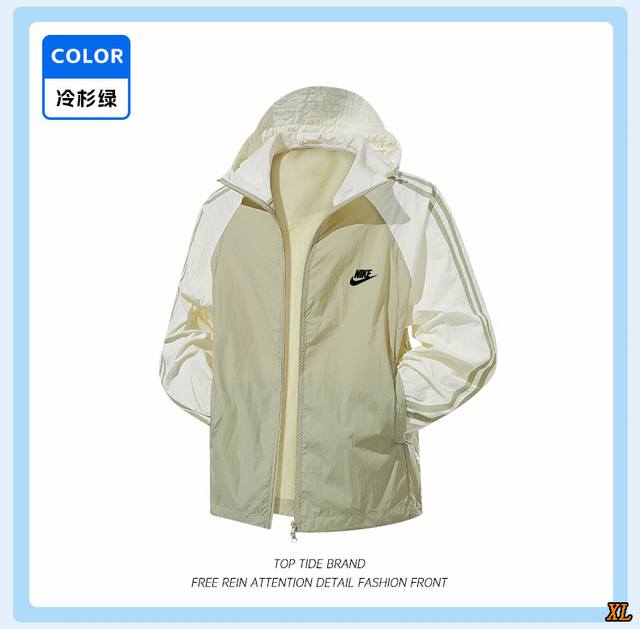 Nike Exclusive Real Shot New Summer High-Quality Trendy Loose-Fitting Versatile Hooded Jacket, Unisex Striped Sun Protection Shirt, Skin-Friendly Jacket. This season's main item, ample stock, highly recommended, high-end quality, classic design, excellent workmanship, classic and versatile, excellent fit.