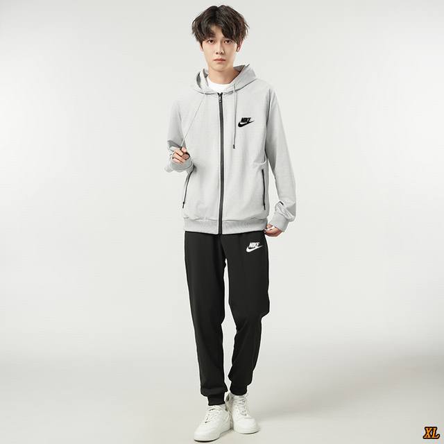 Nike exclusive real shot of the new autumn high-quality reflective strip hooded cardigan sweatshirt suit casual sports sweatshirt sweatpants hooded pullover suit hooded cardigan long-sleeved loose casual sports suit, this season's main product, sufficient supply, rest assured to promote, high-end quality, classic design, excellent workmanship, classic and versatile, the upper body effect is excellent