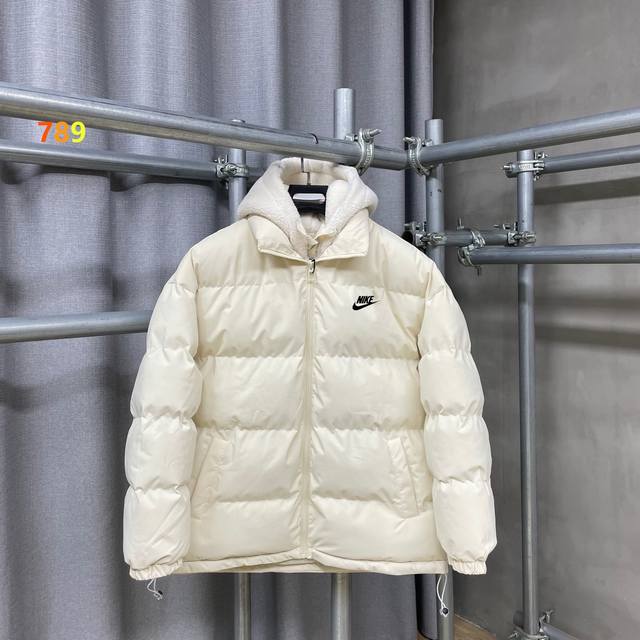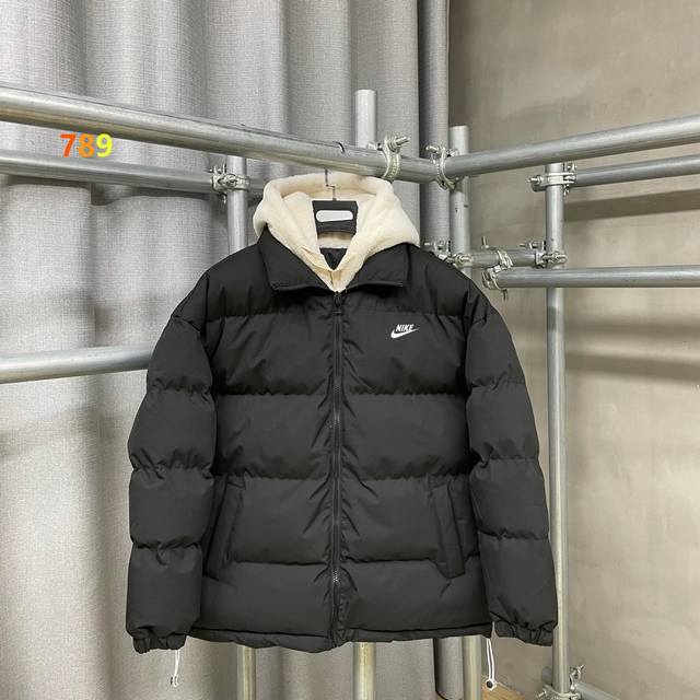 Nike Faux Two-Piece Lambswool Color Block Stand Collar Wide Woven Bag Drawstring Hood Thickened Cotton Down Jacket Winter New Arrival Hot Selling Item Custom High-Quality Winter Windproof Fabric The lambswool in the hood is custom-made 700G cashmere fleece, the hood is very soft and three-dimensional, the inner lining is made of 600G Xinjiang hand-stuffed cotton, it will not move or deform even after multiple washes and wears. All pictures are real photos taken by myself, so you can buy with confidence. Every piece of clothing is what you see is what you get. The quality is high-end and can be seen with the naked eye. It goes without saying that it is a must-have cotton coat for winter wardrobes. The loose fit is casual and does not pick on body shape. It is easy to wear for any body type. The shop owner's personal favorite, unisex style, can be matched with couples. Colors: White, Black, Caramel.