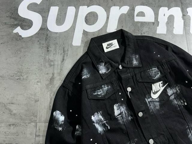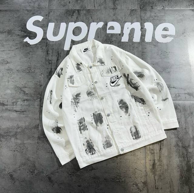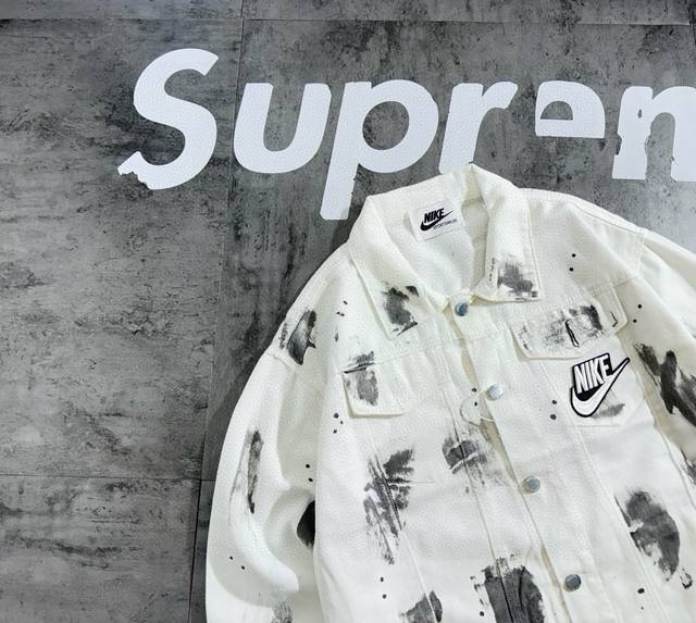 Nike Graffiti 2025 Autumn New Retro Denim Jacket Fabric is made of denim woven f