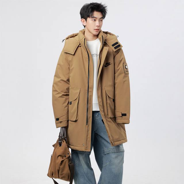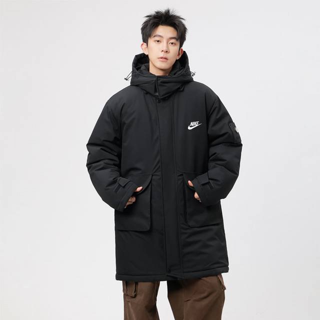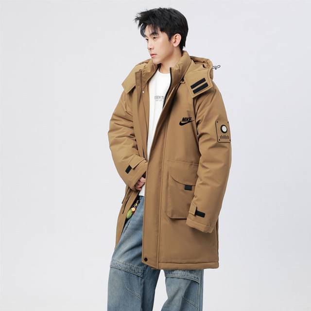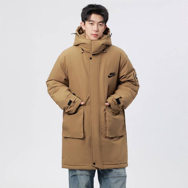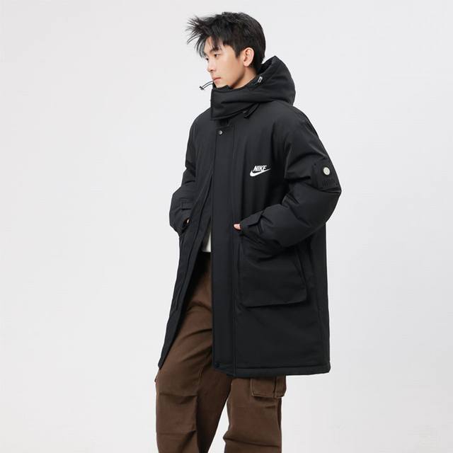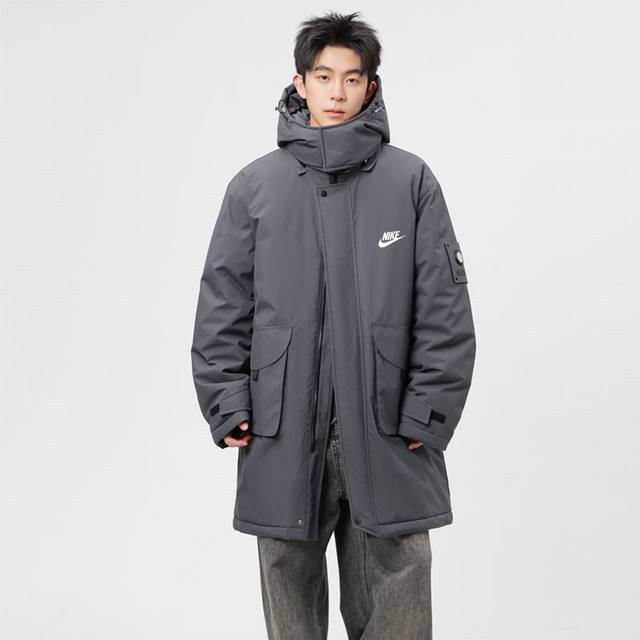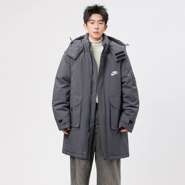 Nike mid-length down-filled cotton coat, unisex, a must-have for your winter wardrobe. It looks amazing on! Filled with pure natural hand-stuffed down, every part is fully padded for a warm and cozy feel! Features the classic Nike logo print on the front. Highly recommended by influencers on Xiaohongshu and Douyin! Perfect details, excellent warmth