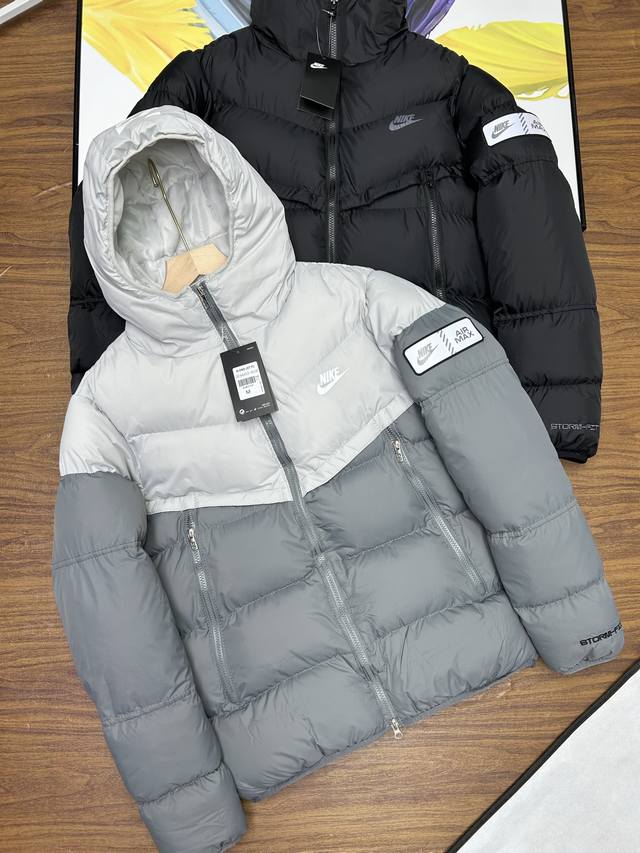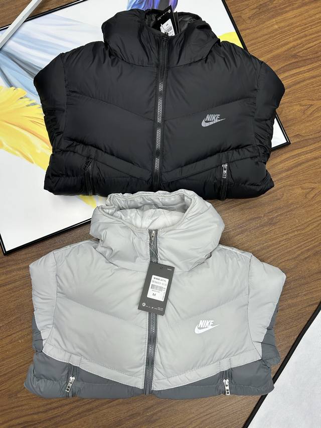 Nike official website synchronized hooded down jacket! Unisex style, with a small hidden compartment, waterproof and windproof material, EU custom fabric! Hand-stuffed cotton, 100% washed, very substantial lining. The puffed collar alone is stunning, the cut is super flattering and not bulky. Updated simultaneously with the official website~~ Nike As classic short hooded down jacket, winter couple style, men's and women's, male and female gods, popular on Xiaohongshu and Douyin, many celebrities have been wearing it! Unisex style, a versatile must-have, absolutely eye-catching! One of the essential winter coats! Made with original factory-supplied windproof fabric, using Xinjiang cotton fleece and high-end down cotton interlayer lining, skin-friendly, soft and warm for better performance! The iconic 3D patch on the chest highlights the brand's identity, while the dropped shoulder design offers a relaxed and stylish look. The entire garment features multiple intricate color-blocking and patchwork designs, showcasing complex craftsmanship and impeccable details. All tags and washing labels are included. Colors: Black, Gray. Sizes: M-XL. Size Chart: M: Length 68cm, Chest 116cm, Shoulder 47cm (Recommended for approximately 120 lbs); L: Length 70cm, Chest 120cm, Shoulder 48cm (Recommended for approximately 140 lbs); XL: Length 72cm, Chest 124cm, Shoulder 50cm (Recommended for approximately 160 lbs); XXL: Length 74cm, Chest 128cm, Shoulder 51cm (Recommended for approximately 180 lbs).