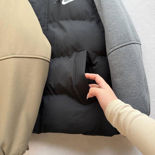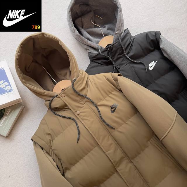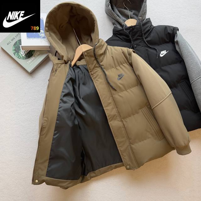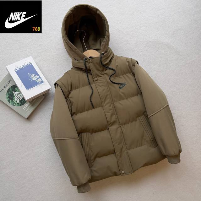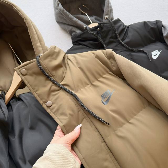 Nike Overseas Exclusive Detachable Hooded Cotton Jacket, New Winter Cotton-padded Outerwear DDD DDD The loose fit was finalized after the designer tried on several batches of cardboard cutouts, allowing customers to wear it more freely. The cut is super flattering and the fit is excellent, with a crisp and textured look. It's waterproof and has outdoor functionality. All stitching is meticulous and not rough, giving it a high-end feel. Features include hand pockets, a bracket-style cut, seamless seam-sealed edges, and a waterproof outer layer made of imitation silk cotton with a multi-layered fiber structure and rectangular stitching. The filling is evenly distributed and won't clump after machine washing, making it as fluffy and lightweight as a down jacket. The inner lining features graphene self-heating technology, a heat-retaining feature, and a temperature-sensitive color-changing function that measures temperature in 15 seconds. Detailed images are available. The hood is equipped with windproof buckles. This cotton jacket reflects our meticulous craftsmanship. Look closely at every detail. This isn't about making money; it's about meeting those who truly appreciate it. Close your eyes and experience it for yourself. It's breathable, suitable for various environments, and allows for easy sweat wicking during running. The comfortable and lightweight fabric is resistant to fading and deformation, adding a touch of character to a simple garment without being overly complicated, ensuring a comfortable fit. Colors: Black, Coffee.