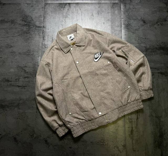 Nike series patch embroidered logo Chanel-style lapel jacket for couples. Sturdy and well-fitting, original quality, washable, colorfast and pill-resistant. High-density patch embroidery with thousands of stitches, neat, three-dimensional, clear and full detail. Couple style.