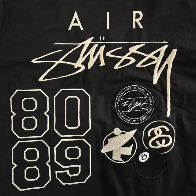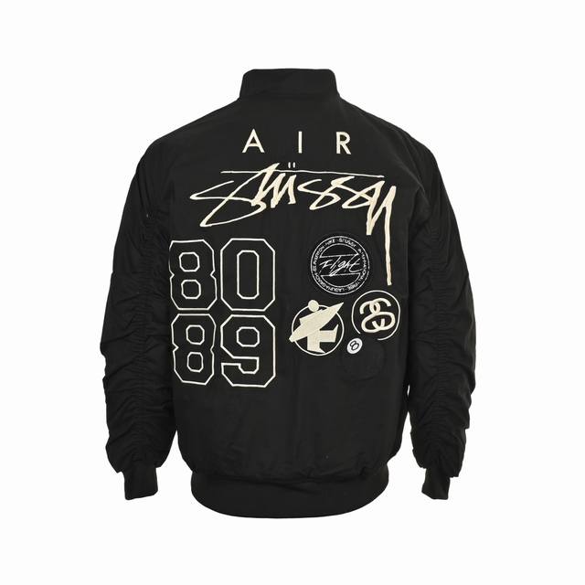 Unisex Hot Selling Item, the last of the collaboration's hype! This jacket is the best-looking piece from this collaboration. Fashion is cyclical, and the Bomber jacket is back again! It's reversible, featuring Stussy's iconic logo embroidery on the back. The embroidery and patches combine classic Stussy elements with Nike's Air Logo, making it an instant must-have. The lining also features embroidery to clearly identify it as a collaboration, and the embroidery is very solid! The short, wide, loose fit has a great slimming effect.