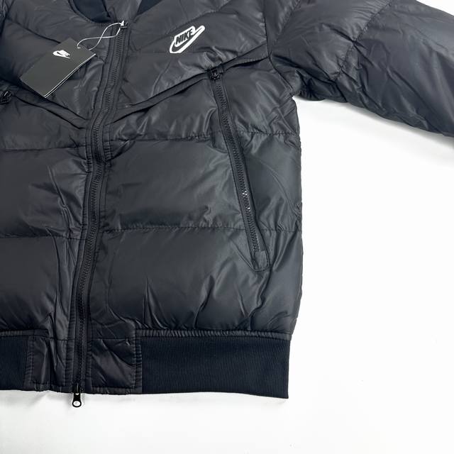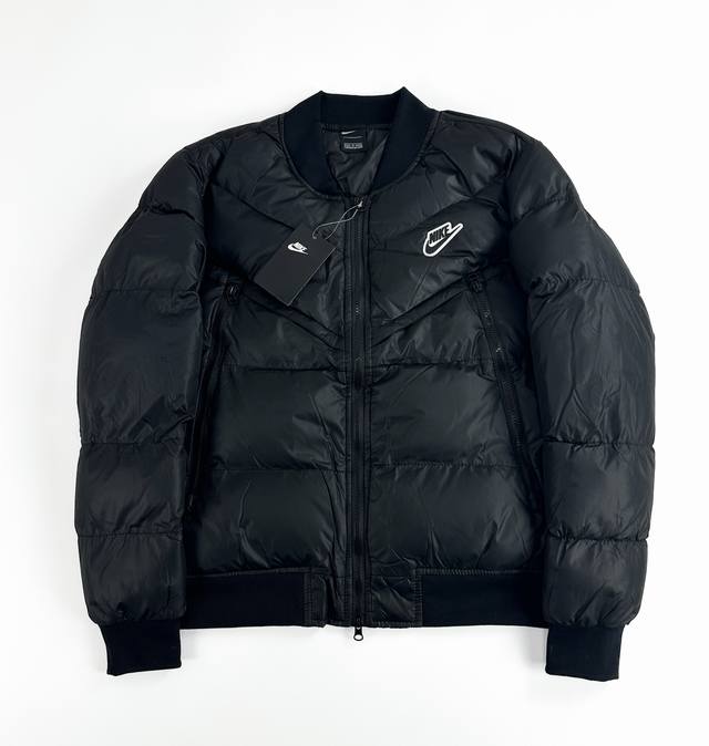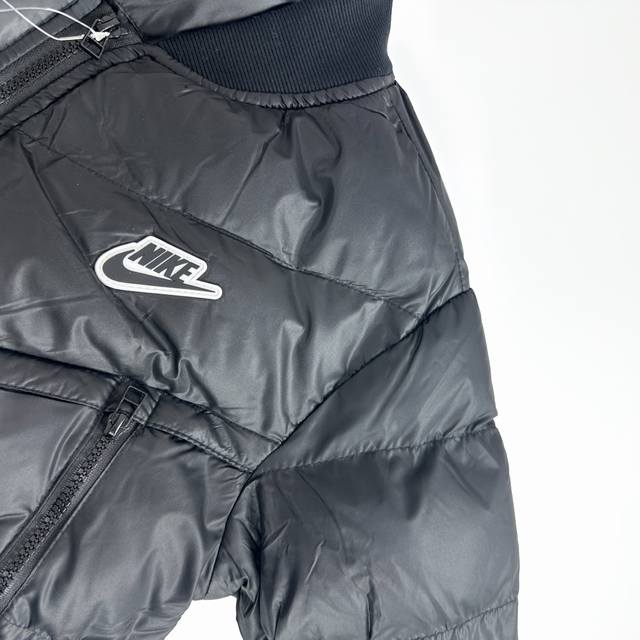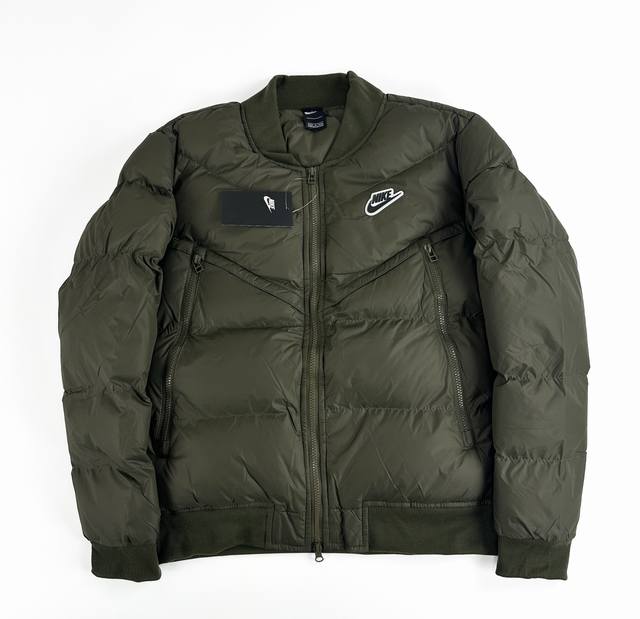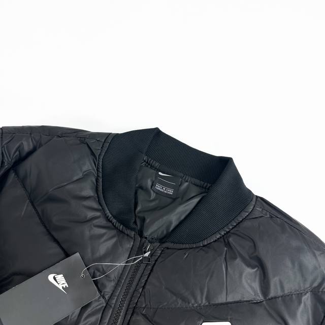 Nike Winter 3D Label Color Block Stand Collar Windproof Short Baseball Flight Jacket (Ddd) - A viral hit on Xiaohongshu and Douyin, worn by many celebrities! Made with original factory-supplied windproof fabric, featuring Xinjiang cotton fleece and high-end down cotton lining for superior skin-friendly softness and warmth! The iconic 3D label on the chest highlights the brand's identity. The dropped shoulder design is relaxed and stylish, showcasing a fashionable look. Multiple high-difficulty color blocking designs throughout the body demonstrate complex craftsmanship and perfect details. All tags and washing labels are included. Unisex, a versatile must-have, guaranteed to turn heads! A must-have winter outerwear! Ddd perfect quality! Whole box of supplies! Highly recommended. Sizes: M-2XL. Colors: Black, Green. Size chart: S 112 66 46 60; M 116 68 48 62; L 120 70 50 64; XL 124 72 52 66; 2XL 128 74 54 68.