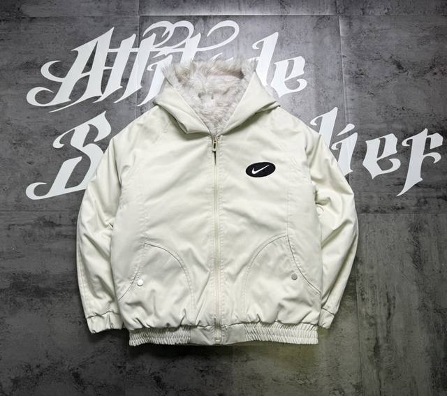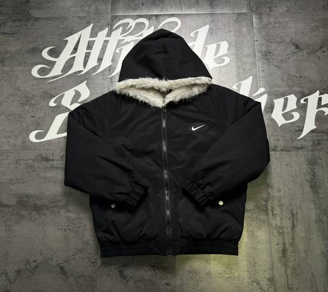 Nike Winter Limited Edition Faux Mink Fleece Hooded Couple Jacket, Available in Three Colors. Made with cotton yarn composite microfiber sports fabric; 3D original design. Faux mink fleece lining for warmth and style. Custom hardware. Couple style with all three tags included.