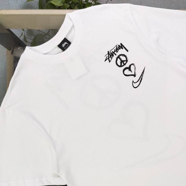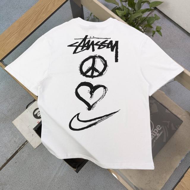2025 new Stussynike co-branded Nike big hook letter pattern Logo print casual couple loose short-sleeved T-shirt, classic will never go out of style, a must-have for everyone, 250G pure cotton combed cotton does not pill or lint, the texture is absolutely comparable! Environmentally friendly imported printing paste! Quality assurance, original fabrics, custom dyeing, patina printing environmentally friendly and no cracking, welcome to compare quality, same style for men and women!