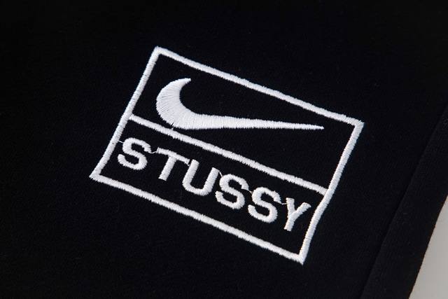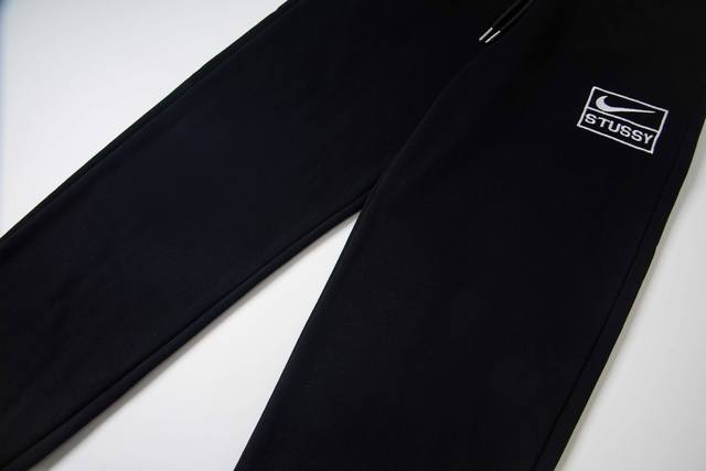 Xy8907# High-quality, premium item, distinguishing it from common market goods. Nike x Stussy collaboration solid color logo embroidered track pants, unisex. Colors: Black, Gray. Sizes: S, M, L, XL. Fabric: Pearl velvet. Image: Own white background image.