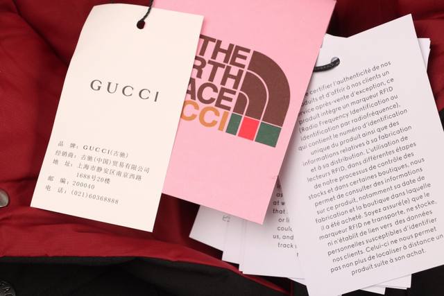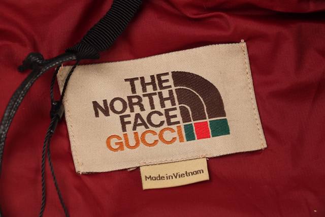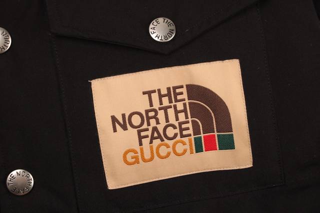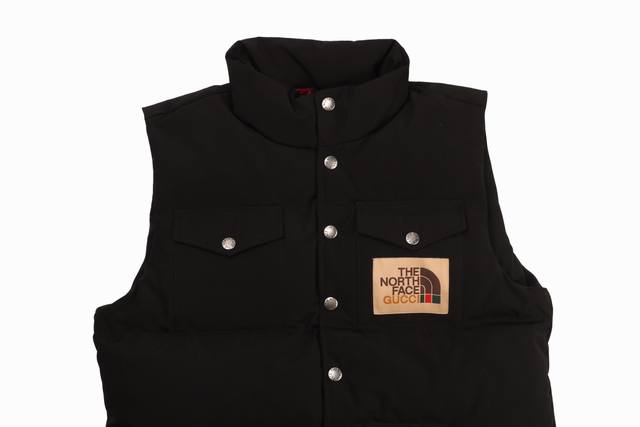 The North Face Gucci collaboration stand-up collar down vest. Filled with Rds-certified high-quality 700ml high-loft goose down, weight 400g. Fabric: Shengze original high-density outdoor lightly waterproof material. Zipper: Ykk Yoshida ISO 9000 top-quality Zp zipper. Liner: 340T high-end down jacket anti-down material. Features: Provides warmth for winter outdoor wear, excellent warmth retention, lightweight and not bulky.