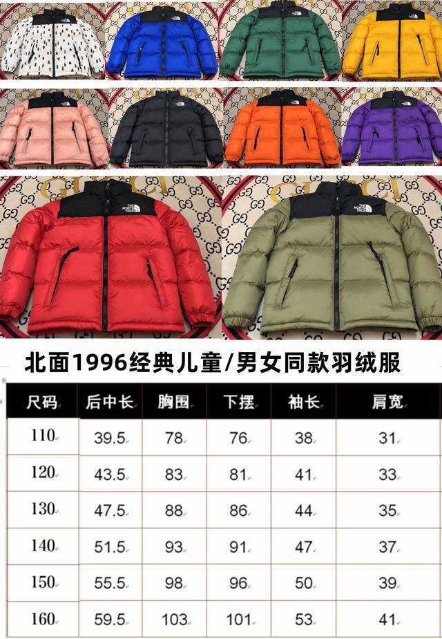 Thenorthface 1996 Nuptse 1996 Children's Down Jacket. The North Face literally means the coldest and toughest side of the mountain. It's also where The North Face's products truly shine. The North Face has always been committed to supporting the discovery and connection with nature, sponsoring explorers to conquer those remote, unreachable corners. The North Face logo is taken from Half Dome in Yosemite National Park, the ultimate goal for rock climbing enthusiasts. Product Information: Filling: RDS-certified high-quality 700g high-loft goose down, weight G. Fabric: Original Taiwanese high-density outdoor lightweight waterproof material. Zipper: YKK Yoshida ISO 9000 top-quality ZP zipper. Liner: 400T high-end down jacket. Anti-down material features: Provides warmth and protection for the winter outdoors, excellent warmth retention, and is lightweight and not bulky.