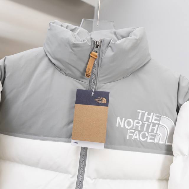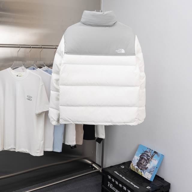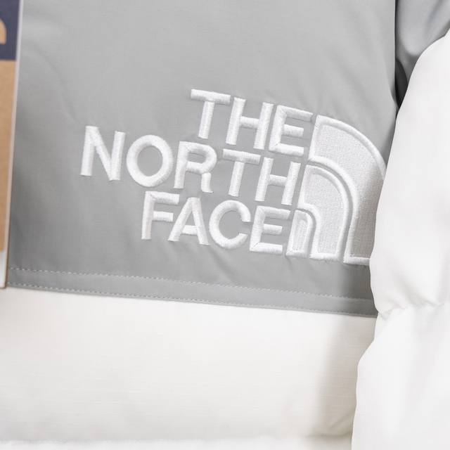 2025 Autumn/Winter New The North Face Embroidered Color-Blocked Down Jacket. Custom-made with imported Barudan embroidery machines using 10,000 needles and imported thread, ensuring each letter is full, three-dimensional, and clear