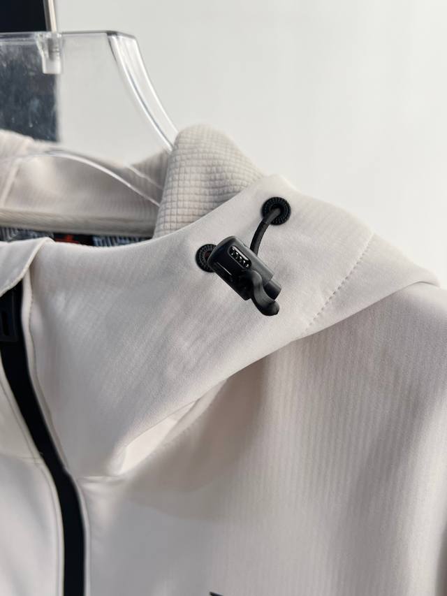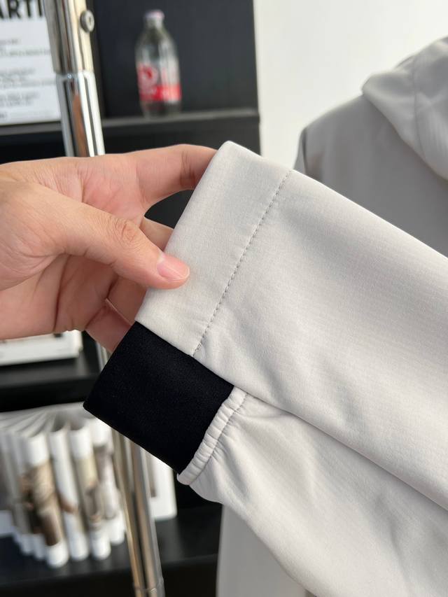 New Hooded Design, Non-Removable Pockets with Zippered Seams, and the Latest Technical Fabric This Year, the entire garment perfectly embodies dynamism, simplicity, and competence. The perfect combination of overall design style and fabric is what creates a garment of this caliber! Both are indispensable! The windproof collar greatly enhances the sporty style of the entire garment, and the jacket possesses waterproof properties that many luxury brands lack! Breathability is also excellent! High-end and luxurious, yet dynamic and energetic! Combined with the latest special technical composite fabric, it is crisp yet soft and comfortable! The fabric also has excellent drape! Even more comfortable, perfectly outlining the figure