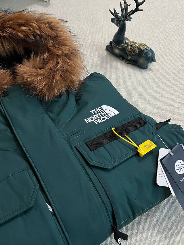 New Arrival Details DDD The North Face Peak Collaboration with Southern Cross Parka, Optoelectronic Functional Four-Pocket Arctic Workwear Down Jacket with Fur Collar Ddd Highest Version Differentiating from Market Standards, Extra Large Mink Fur Collar Ddd A1596 Becomes a New Aesthetic Star After School Uniforms, Japanese Sub-brand, Slightly Mid-Length Fit, Combined with Functional Appearance, Truly a Stylish and Durable Down Jacket. Compared to regular North Face, some details are much more complex, resulting in fewer people using it. It uses 90% down (national standard) with a fill power of over 400. The overall fit and functional outer material prevent it from having the same particularly fluffy appearance as the 96% lightweight fabric, but its warmth is superior. The hooded version features a detachable fur collar, seven snaps to connect the hood, and a brim detail. It has a multi-pocket composite design, with Velcro closure on the front and side zippers; two mesh pockets and a zipper inside. Adjustable pockets, waist, and hem; 75-panel color-blocked construction with 12 eyelets per piece; double-breasted zipper with Velcro closure; imported Patagonian embroidery with no skipped stitches or unbroken threads. Colors: Black, Green, Gray. Sizes: Xs-XXL.