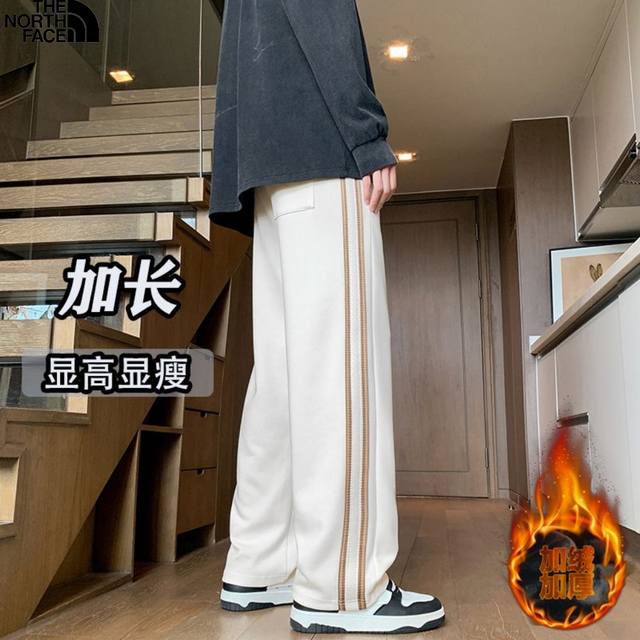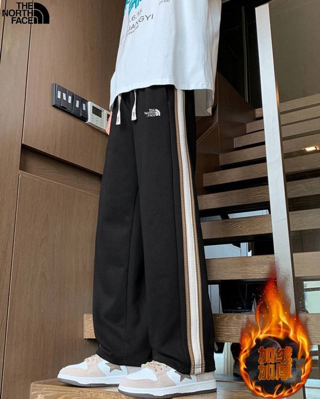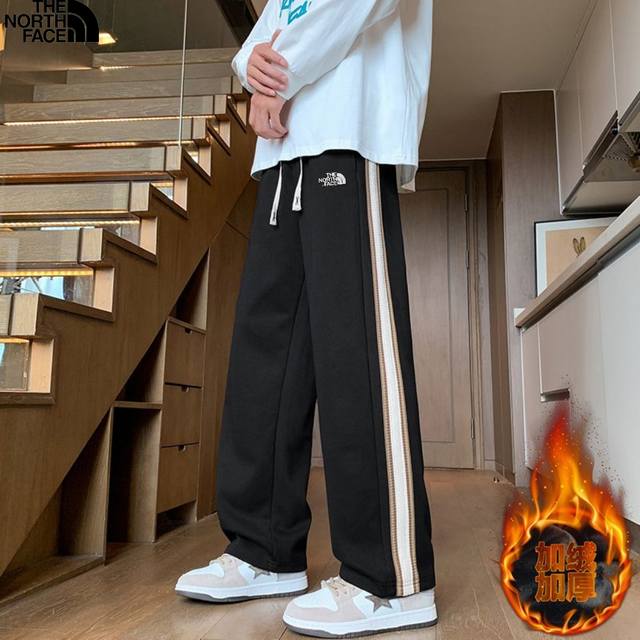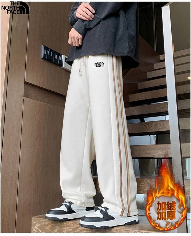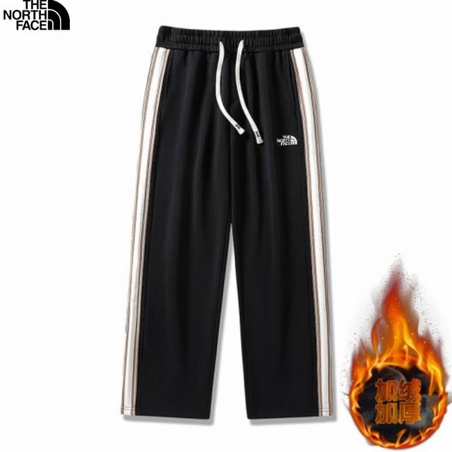New Arrival! The North Face Winter New Arrival, Unisex Elastic Waistband with Side Webbing, Versatile Fleece-Lined Thick Cotton Sweatpants, Men's Straight Leg Pants, Thick Casual Pants! Colors: Black, Off-White Sizes: M-4XL