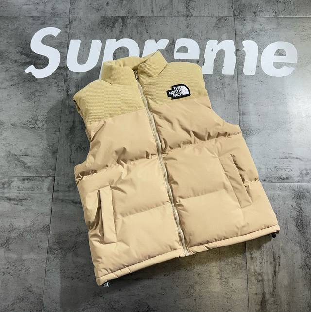 The North Face 2025 Autumn New Baseball Collar Solid Color Thickened Down Cotton Sleeveless Vest. DDD 3-color patchwork solid color down cotton vest, featuring classic baseball jacket elements at the collar and hem, and embroidered print on the chest, simple yet sophisticated. DDD American style oversized, loose and versatile fit, unisex and couple style, a popular online vest, super stylish on, looks great with any top, highly recommended. DDD Sizes: M-2XL